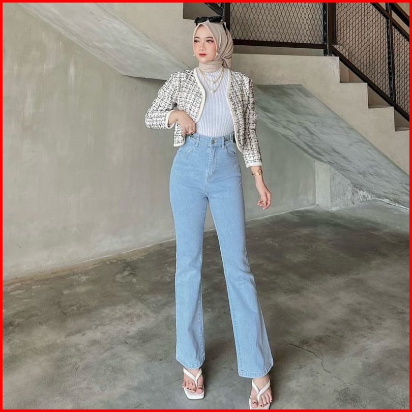 Saza Hw Cutbray Jeans Wanita - Celana Cutbray Strecht Kekinian -cutbray Flared-streetch Premium Quality