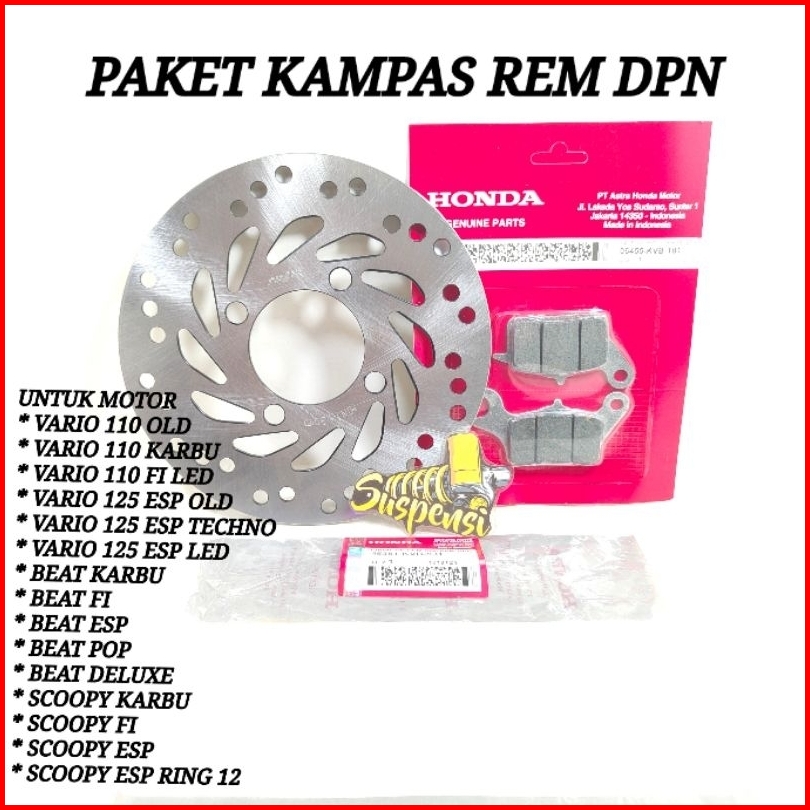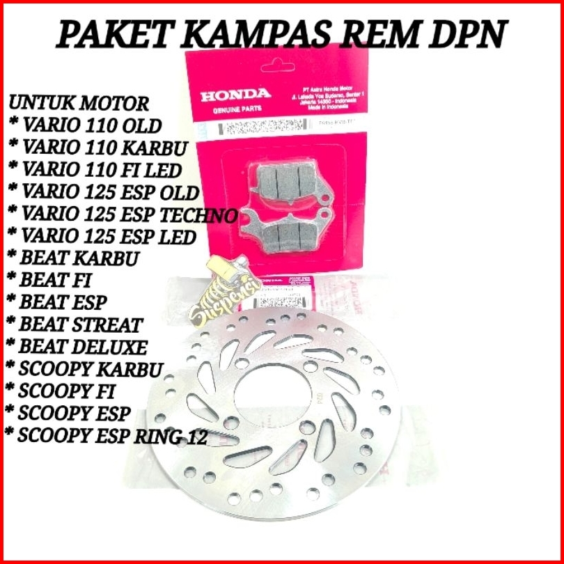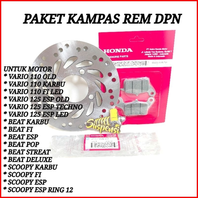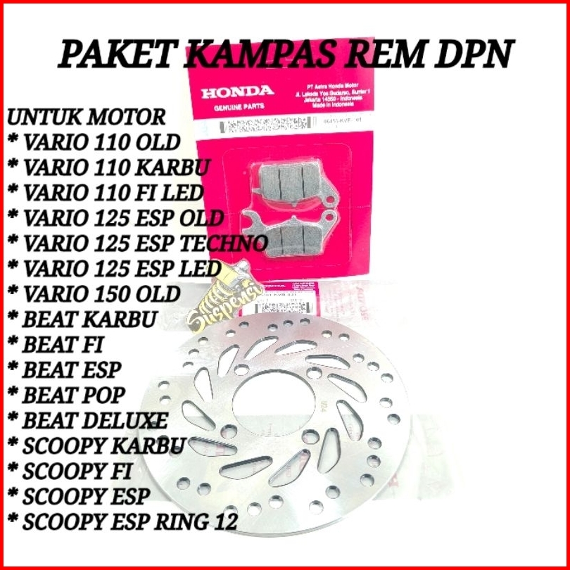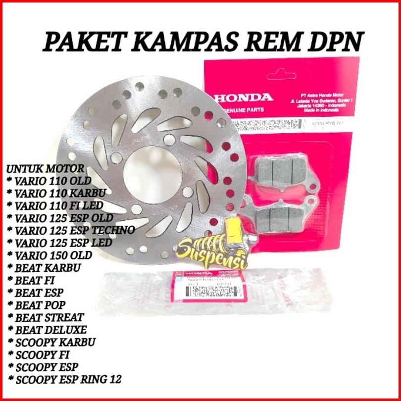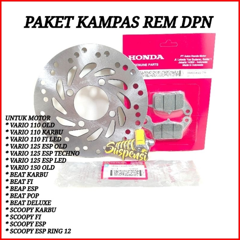 Paket Piringan Disc Plus Kampas Rem Depan Beat Fi Scoopy Fi Beat Pop Spacy Fi Vario 125 Fi Kvb