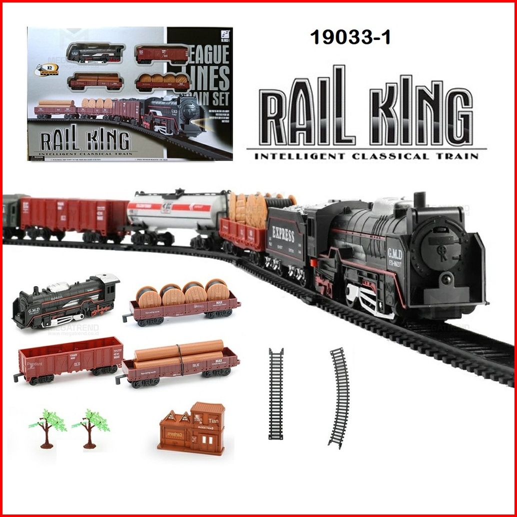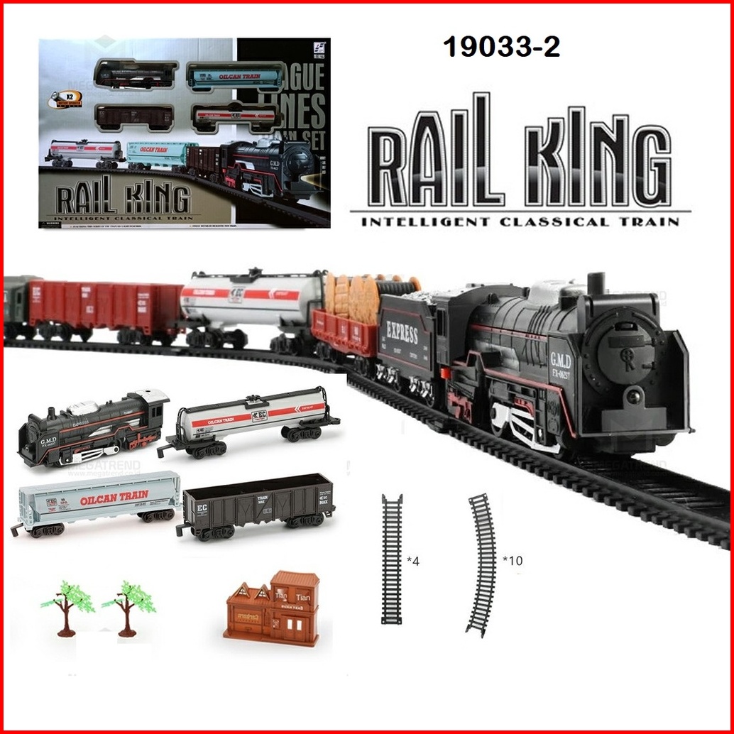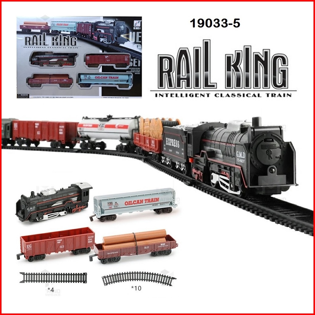Mainan Kereta Api Rail King Lokomotif Berjalan Pada Rel Gerbong Barang Penumpang Train Toys