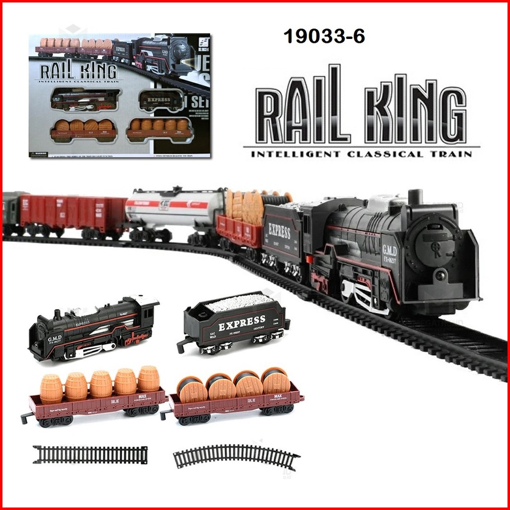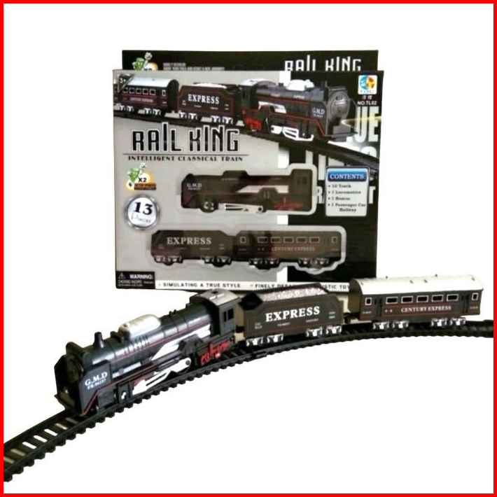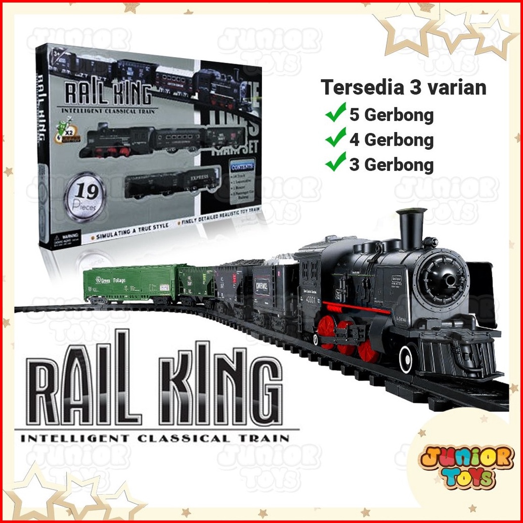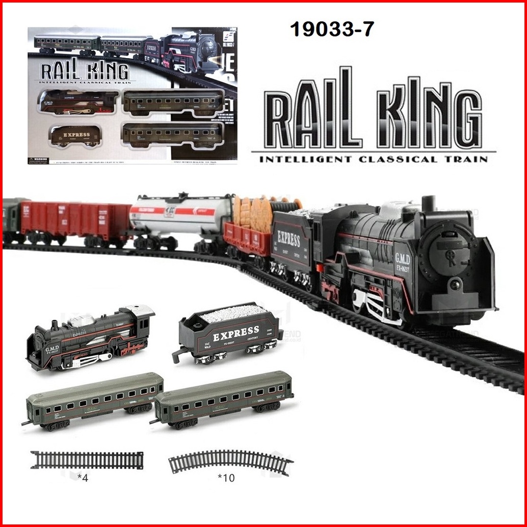 Mainan Kereta Api Rail King Lokomotif Berjalan Pada Rel Gerbong Barang Penumpang Train Toys