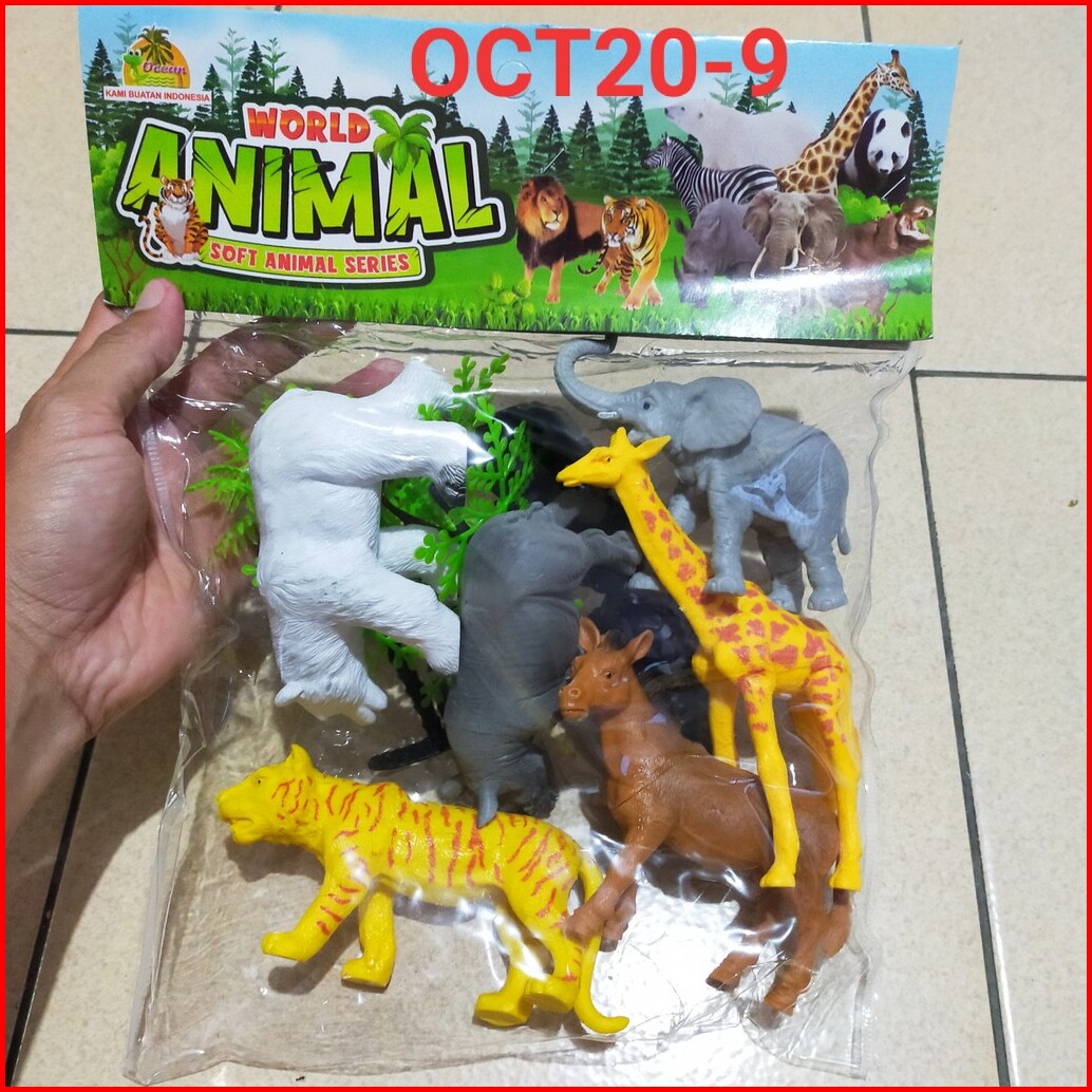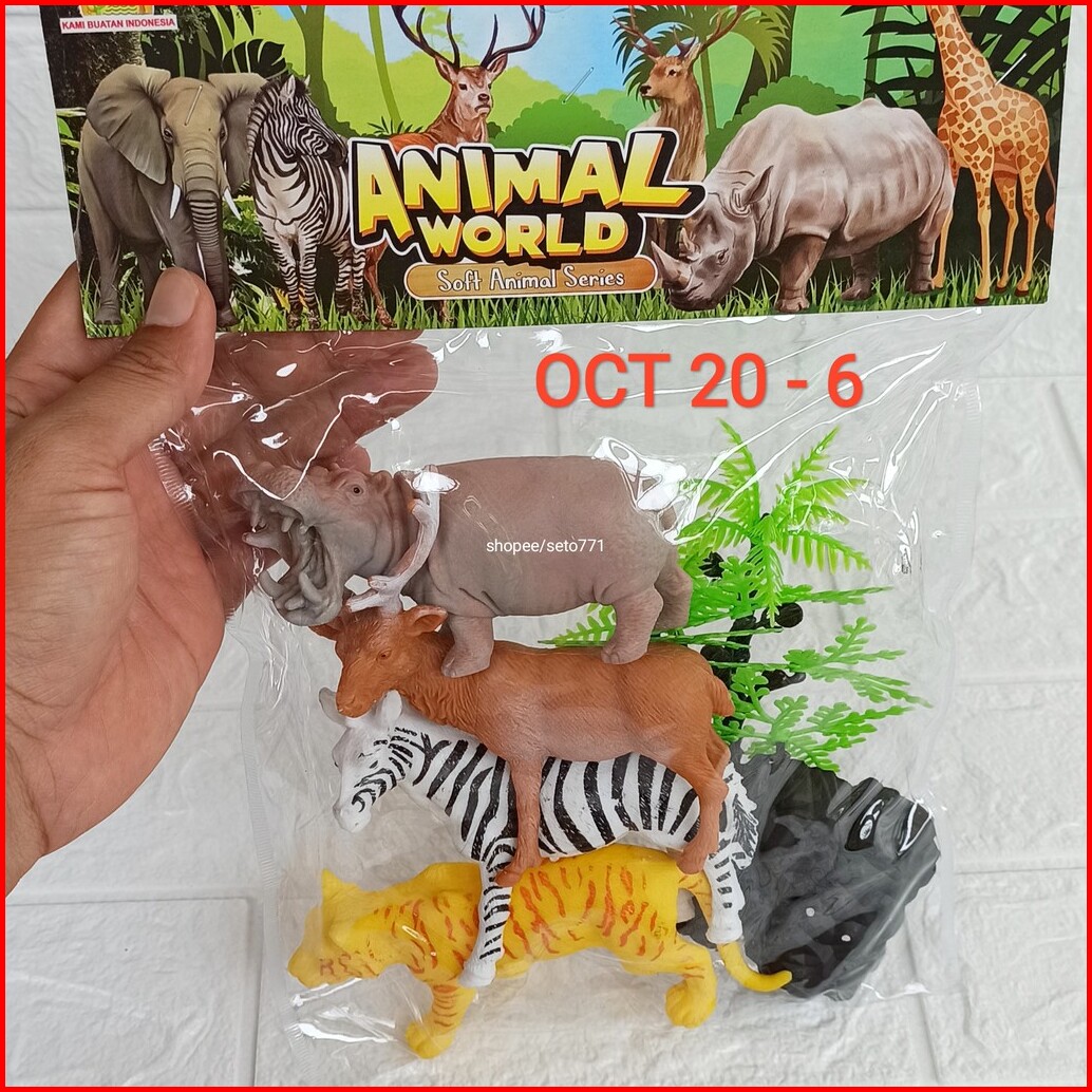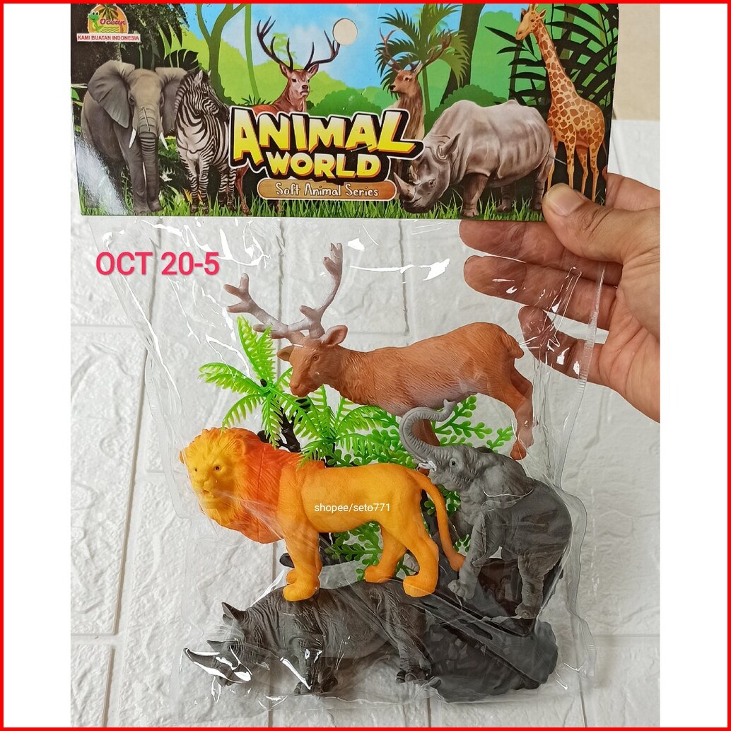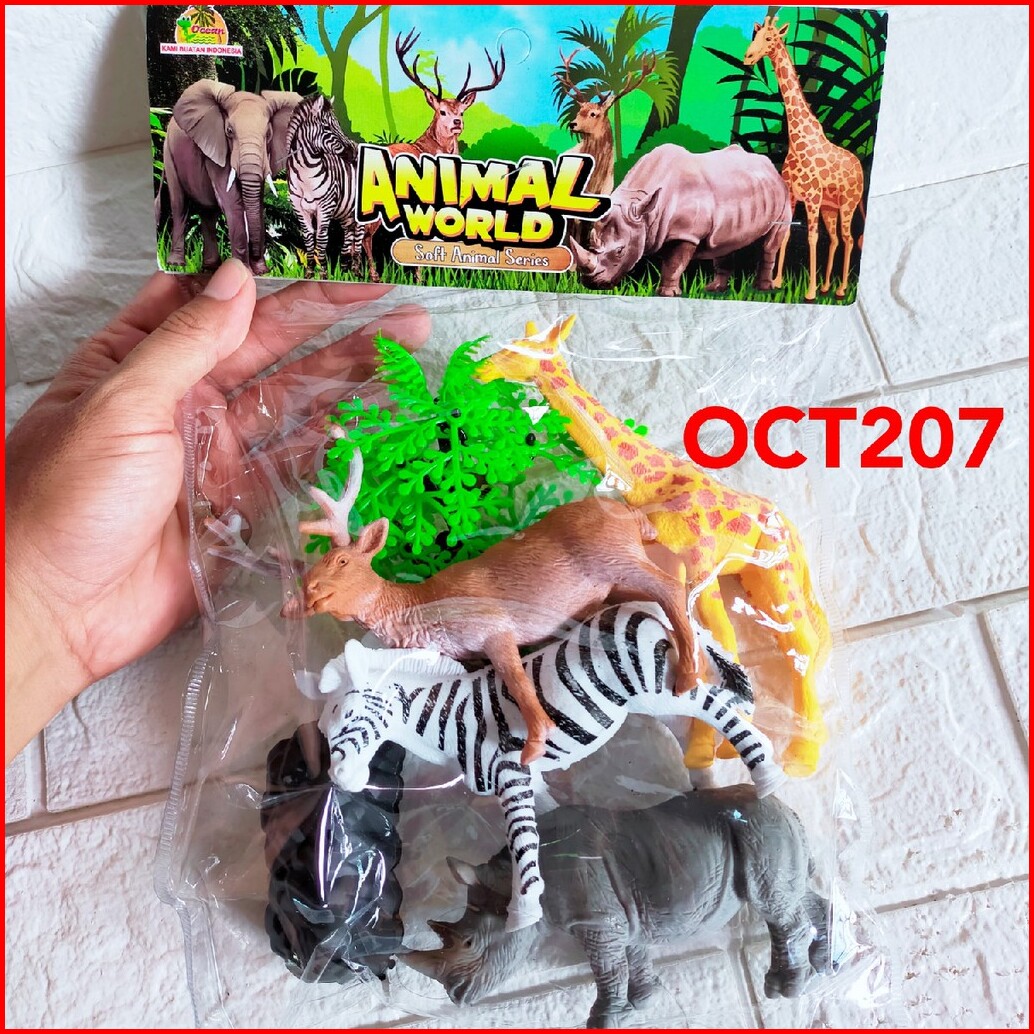 Soft Animal Series Hewan Buas Singa Gajah Badak Rusa Zebra Jerapah Pohon Binatang Liar Bahan Empuk