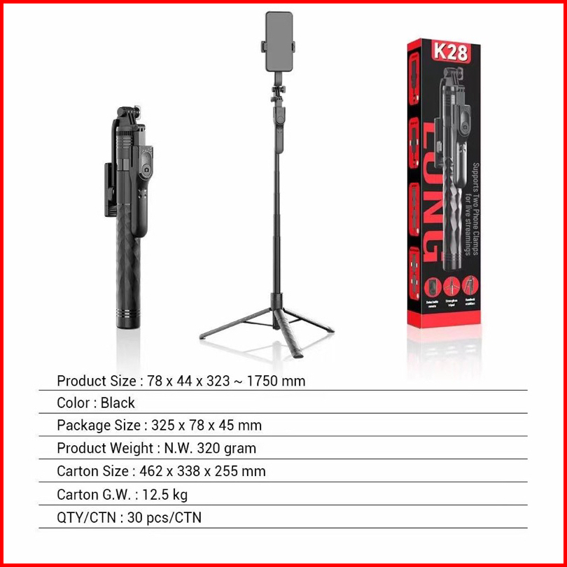 Selfie Stick Wireless Tripod K28 Tongsis Tripod 2 In 1 Bahan Aluminum Kokoh Cocok Pakai Di Handphone Go Pro Kamera Ringl