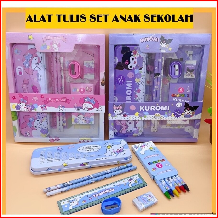 Viral Pensil Sekolah Puncak Promo 11.11 Kotak Pensil Anak Kuroomii Set 7 In 1 Stationery Hadiah Anak Sekolah Alat Tulis
