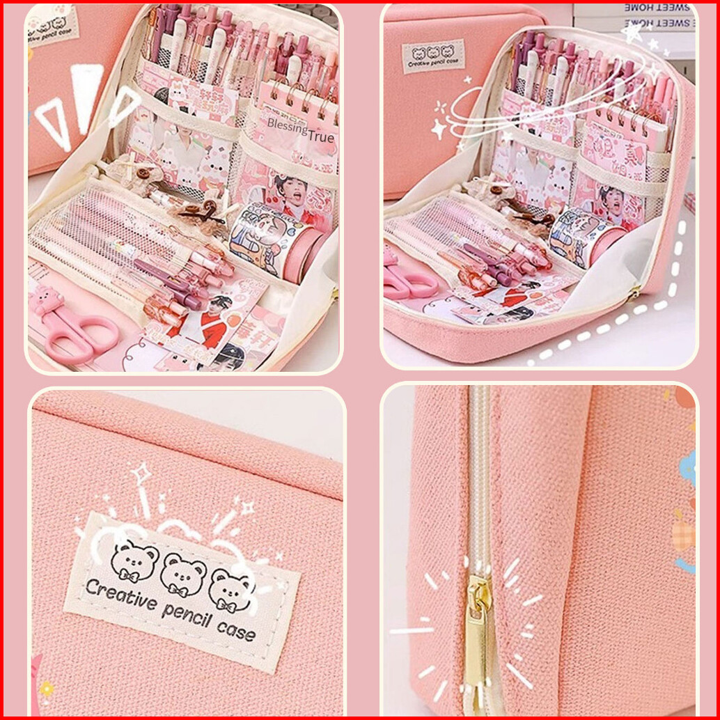 8-layer 12-layer Super Large Capacity Pencil Case Kawaii Canvas Pencil Box Pen Pouch Organizer For Girls Back To School
