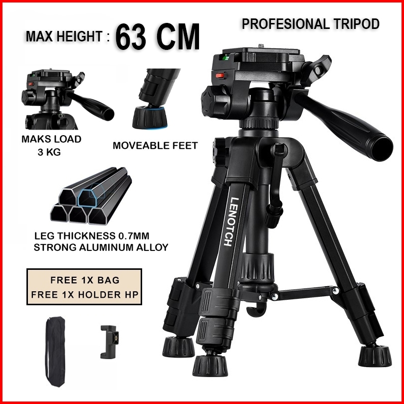 Lenotch 63cm Tripod Profesional Premium Fitur Lengkap Tripod Kamera Dslr Pro