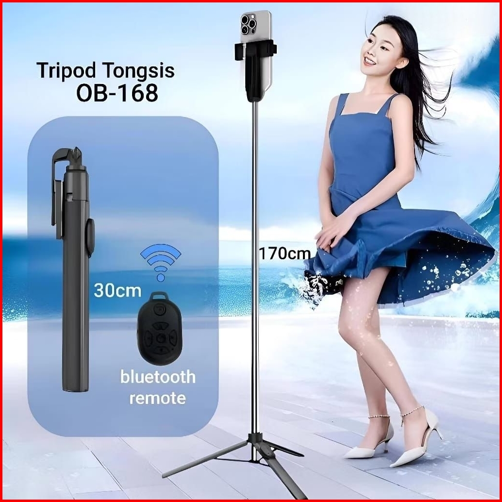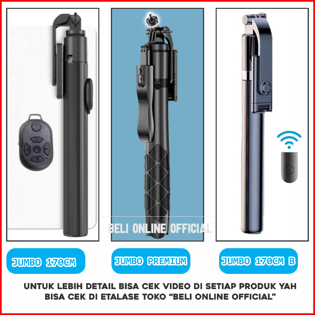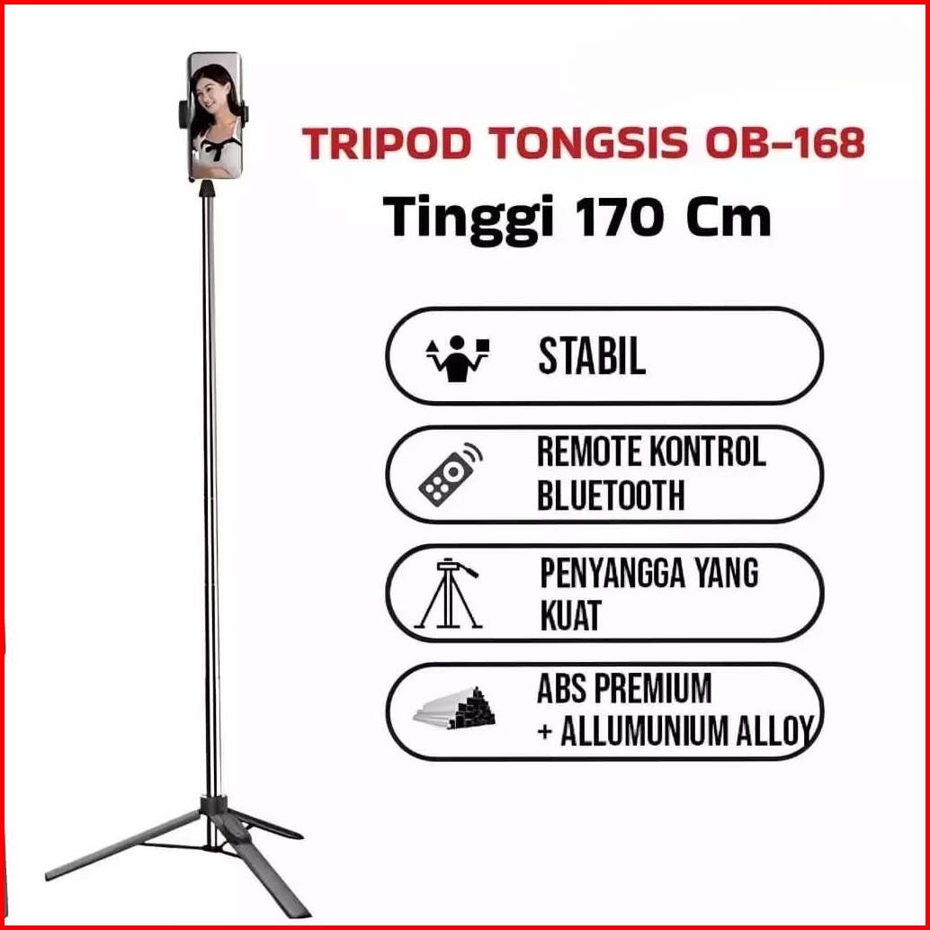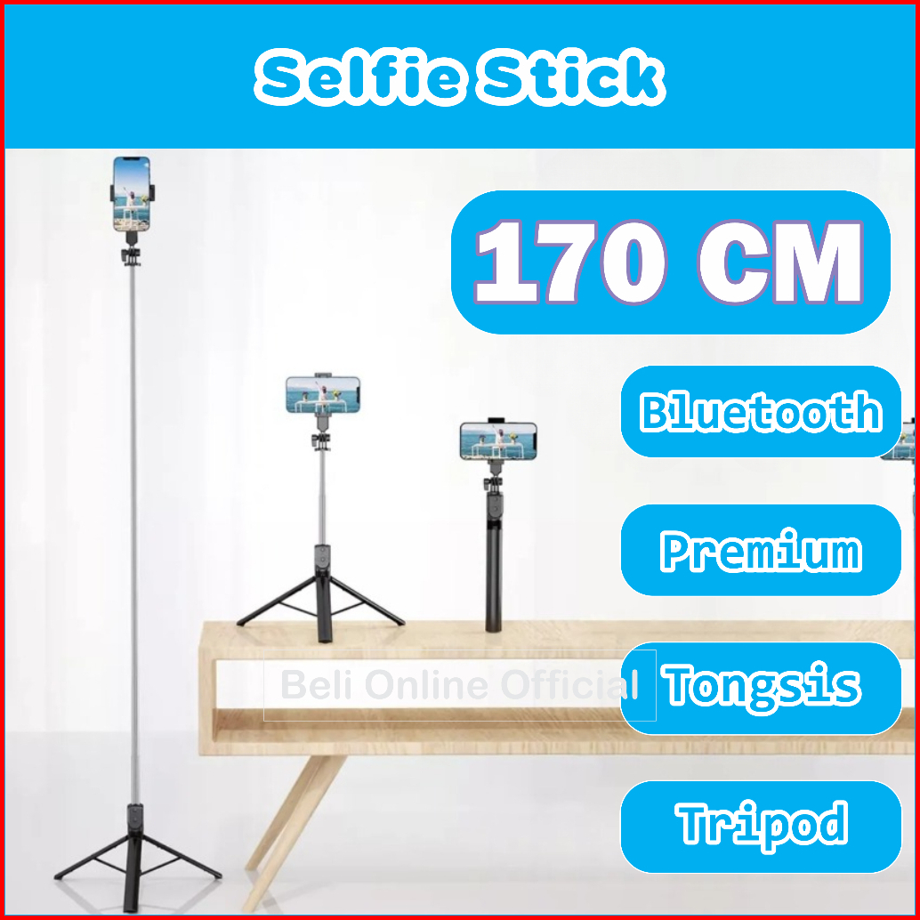 Tongsis 1.7 Meter Bluetooth Selfie Stick Tripod Jumbo Remote Multifungsi 3 In 1 170cm Multipod Foto Video