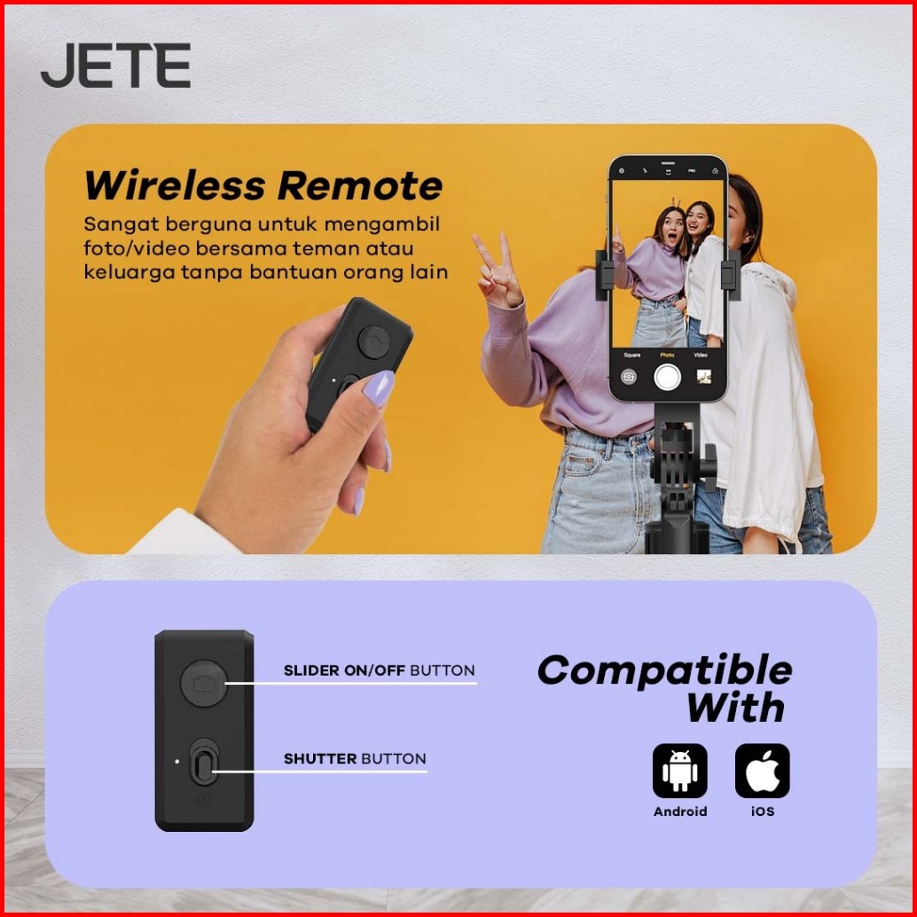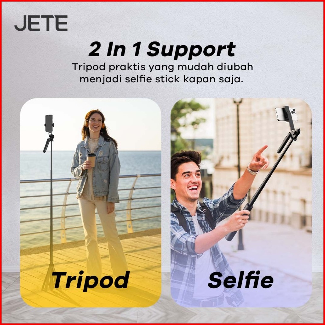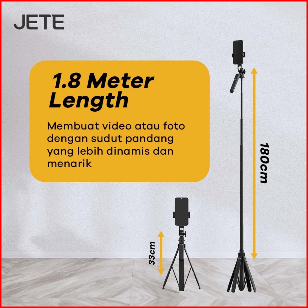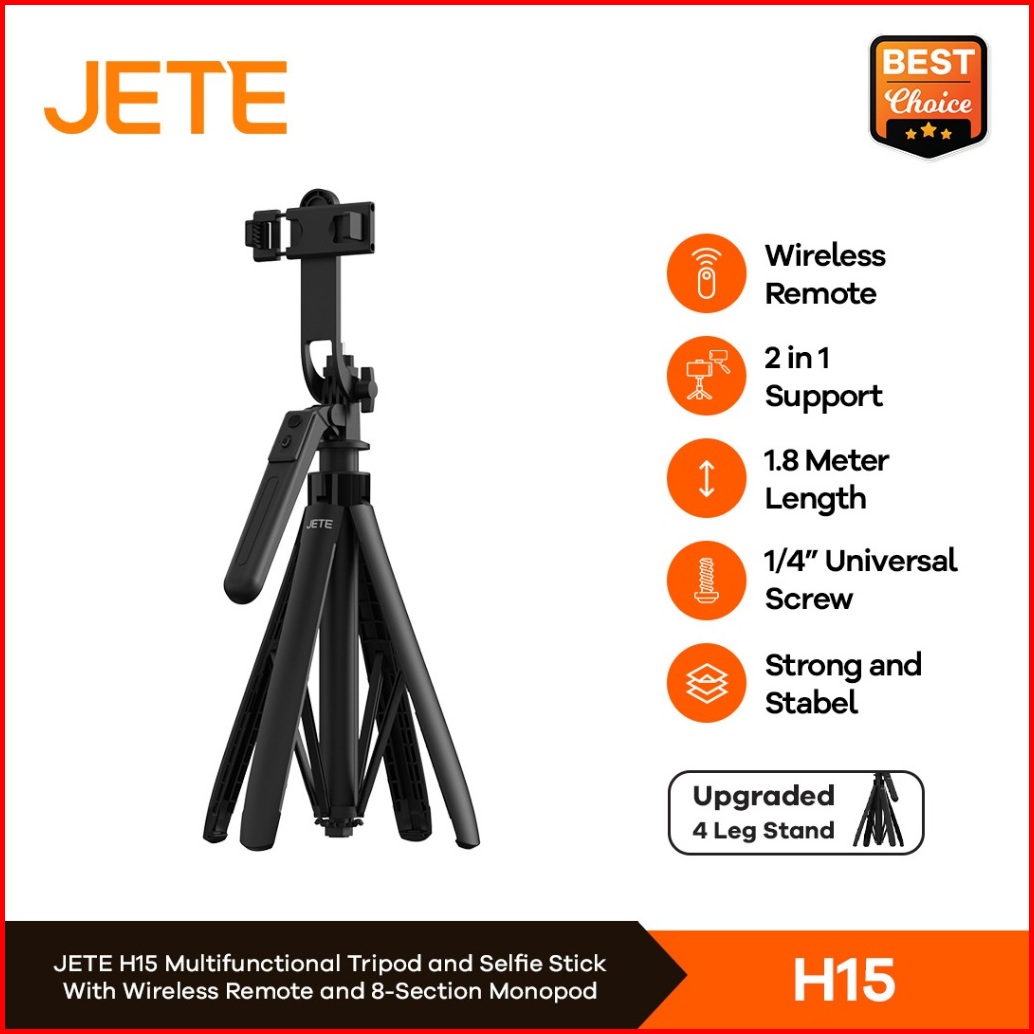 Jete Tripod Bluetooth H15 Portable Tongsis Selfie Stick 1.8m With Postel Wireless Remote Action Kamera Hp