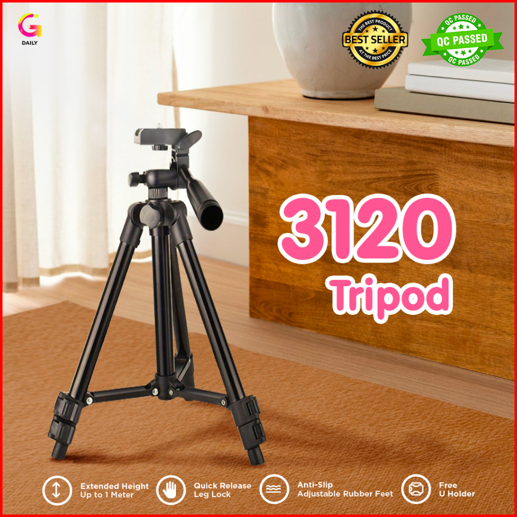 Tripod Foto Kamera Hp Universal Tr 3120 Tinggi 1 Meter Hitam Black Free Tas Dan Holder U Universal