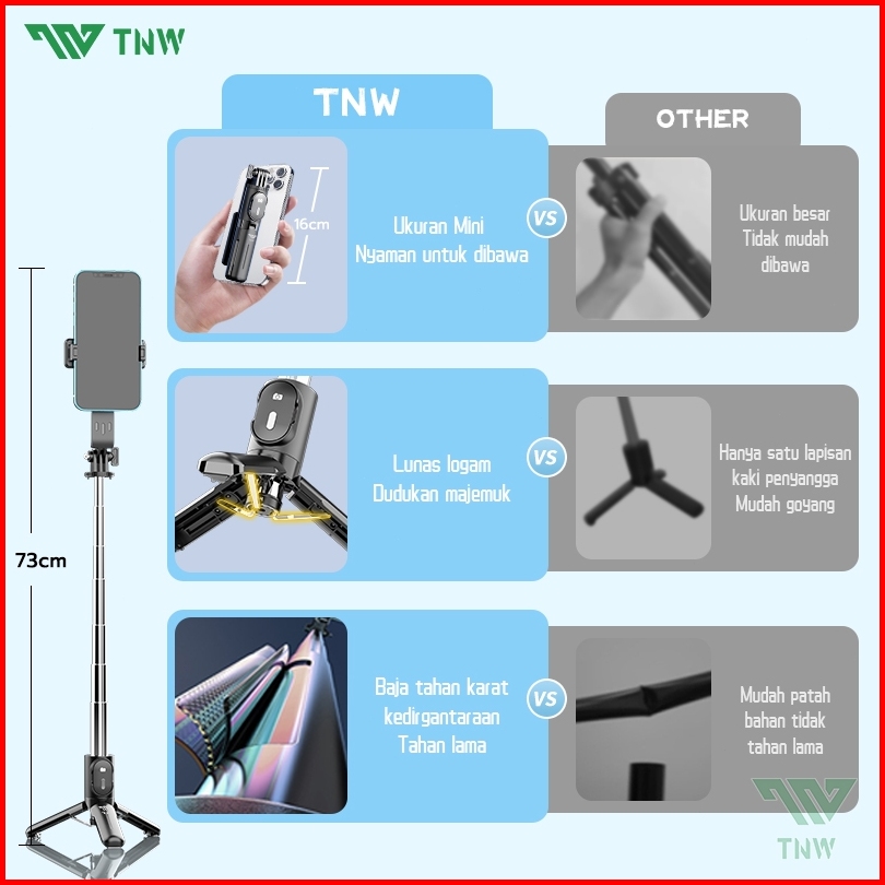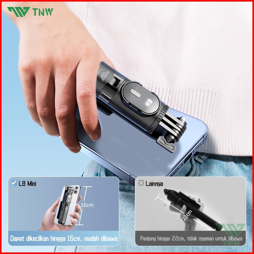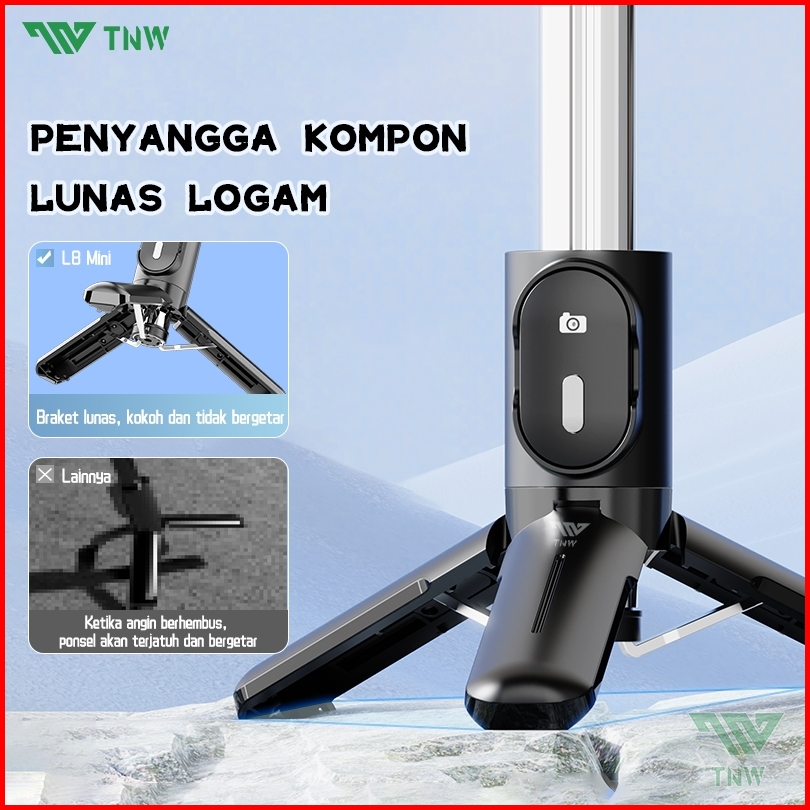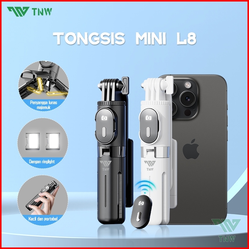 Tnw Mini Selfie Stick L8mini Tongsis Bluetooth Tripod 3 In 1 Selfie Stick Tongsis Portable Remote Dan Lampu Sorot