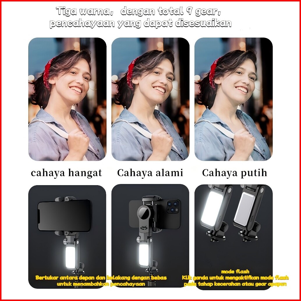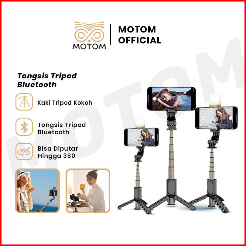 Motom Mini Selfie Stick Tongsis Bluetooth Tripod Led Fill Light Tongsis 3 In 1 Wireless