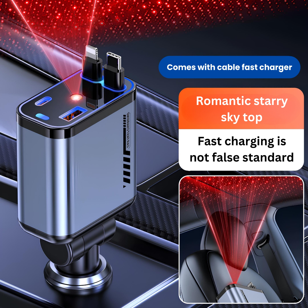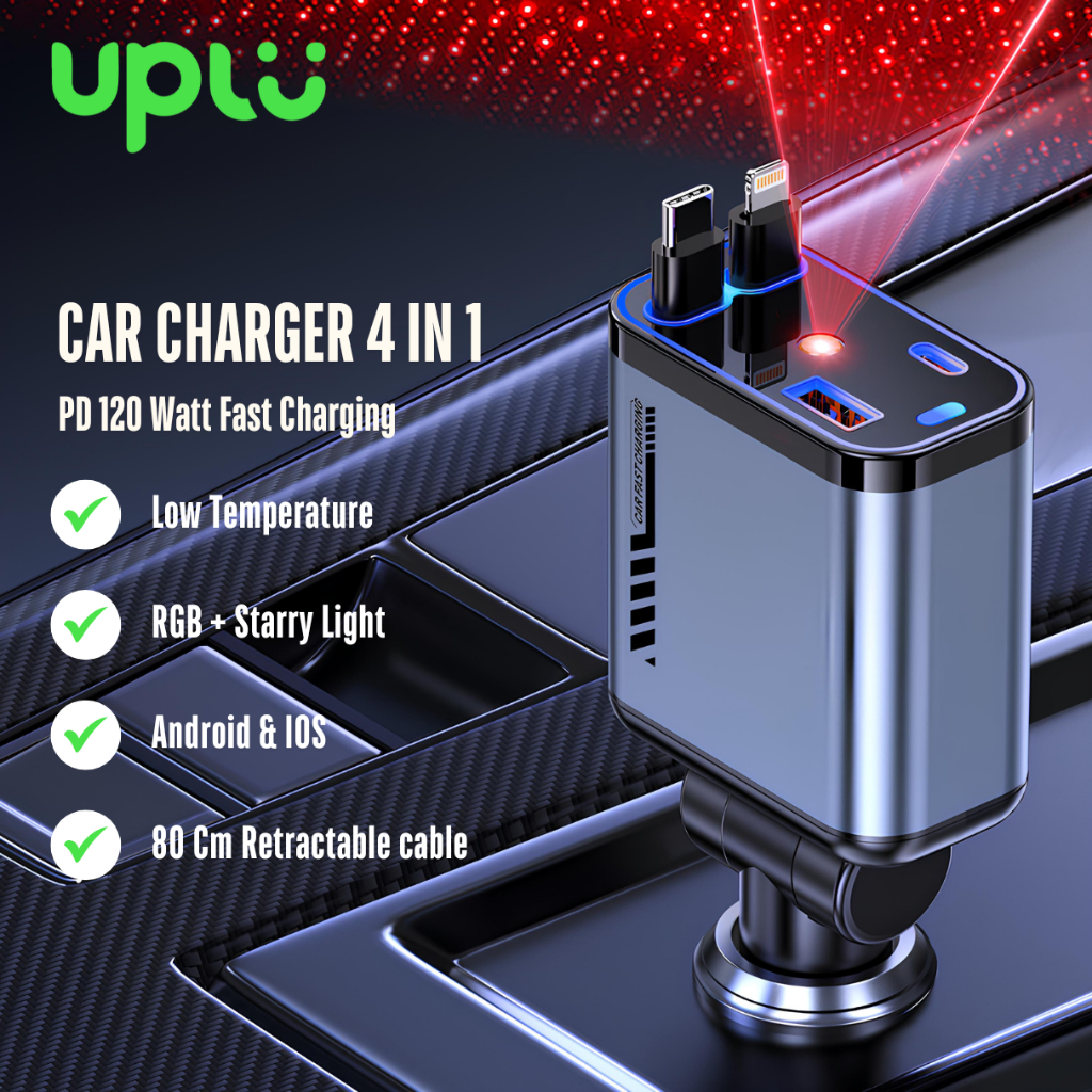 Charger Mobil Fast Charging Colokan Mobil 4 In 1 PD 120W RGB Starry Light Iphone & Android