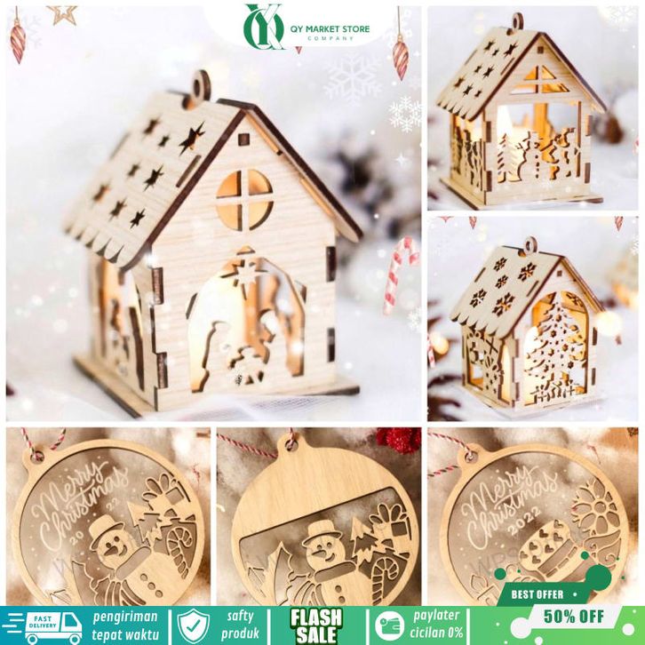 CHRISTMAS TAG ACRILIC GANTUNGANCHRISTM KAYU PREMIUM PLY WOOD MINI COTTAGE LIGHT GIFT TAG AKLIRIK HIASAN NATAL SNOWFLAKE