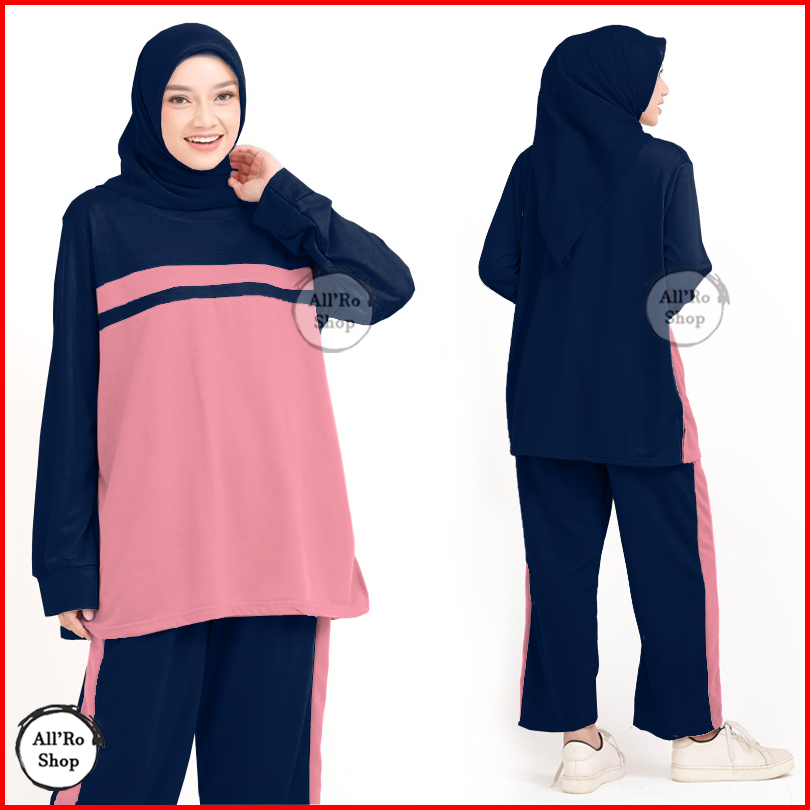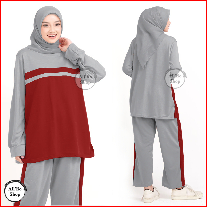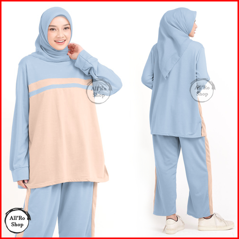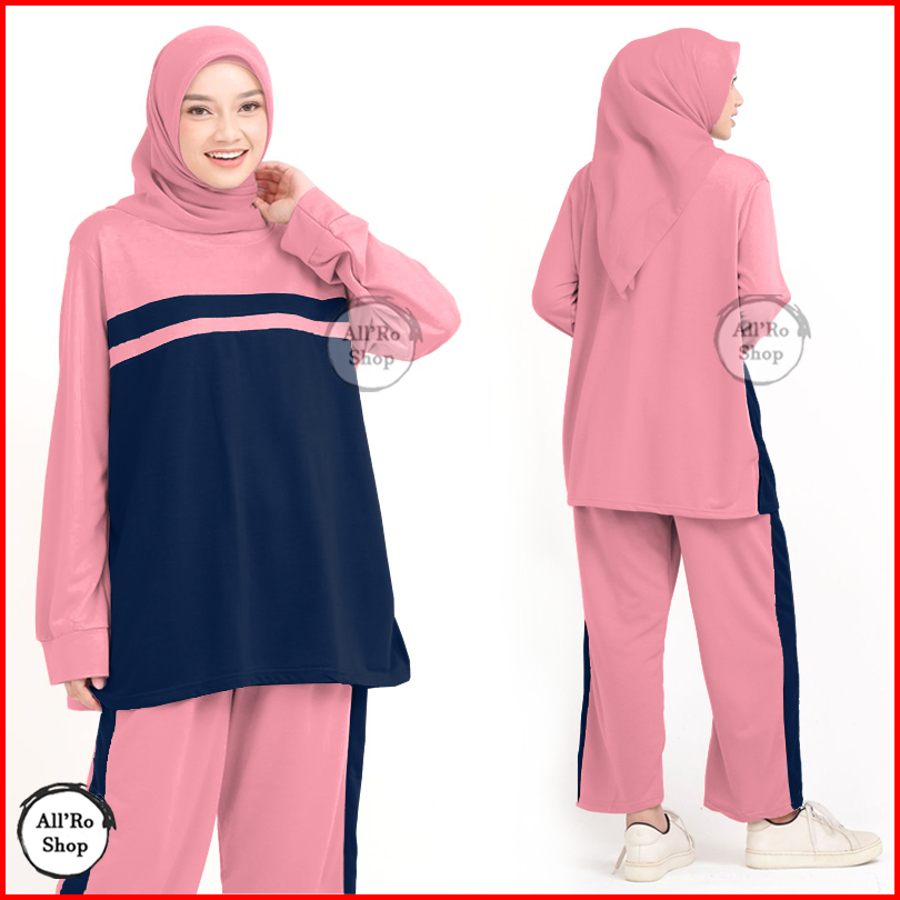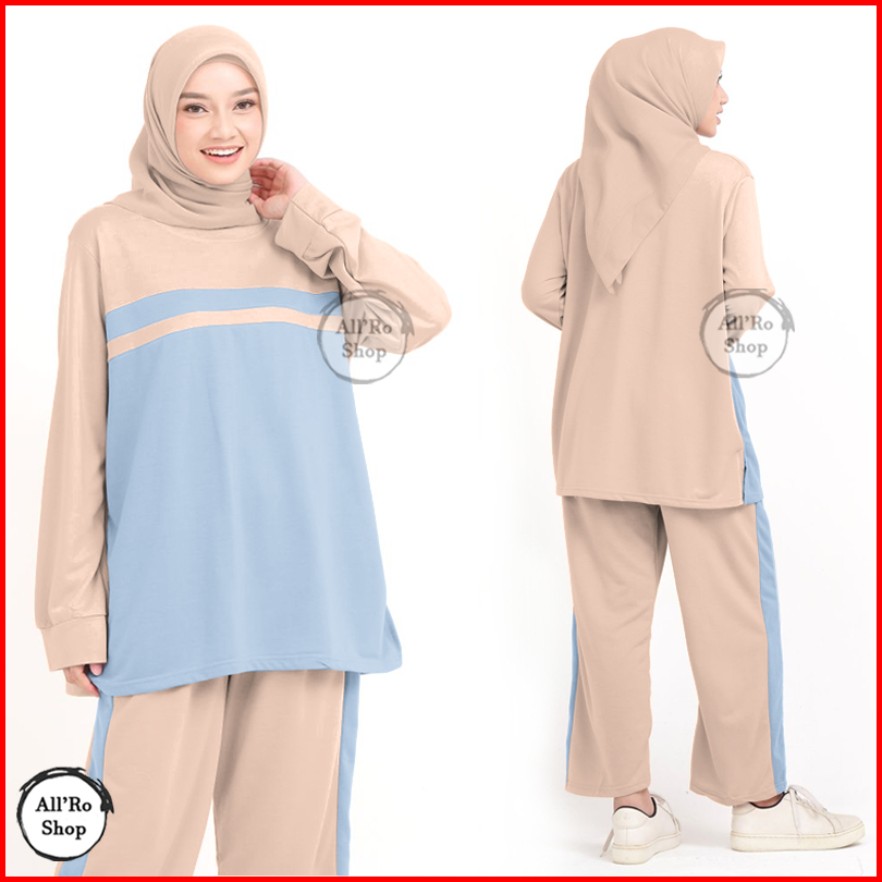 Setelan Baju Dan Celana Olahraga Wanita Muslimah Terbaru Simpel Lucu Set Hana Ars S20