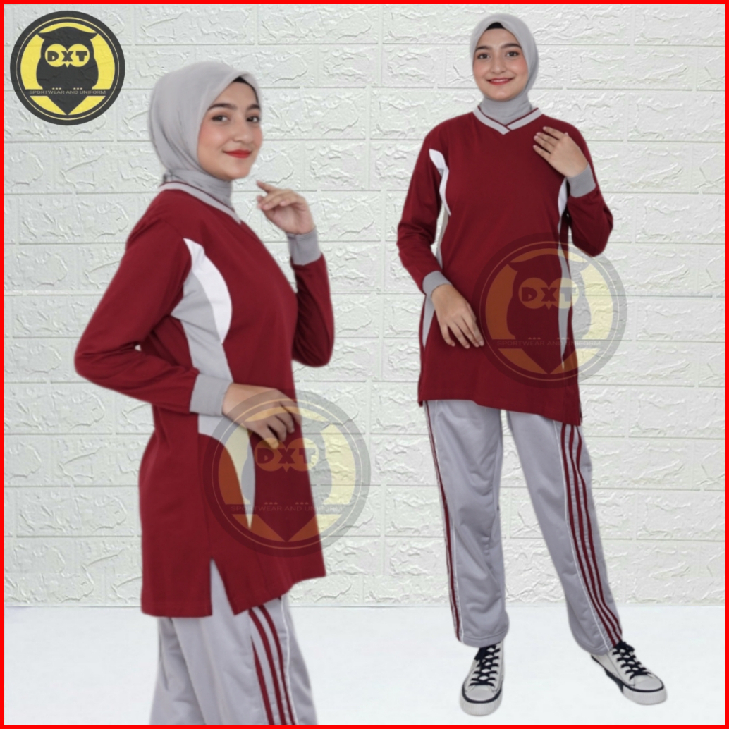 Baju Senam Wanita Setelan Muslimah Kaos Olahraga 1 Set Wanita Stelan Trening Baju Olahraga Muslim