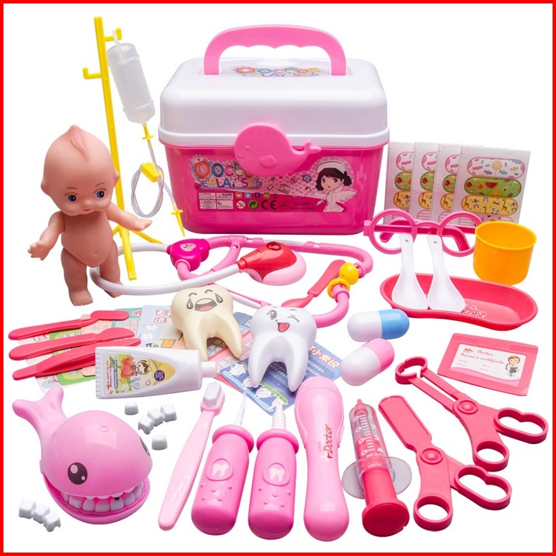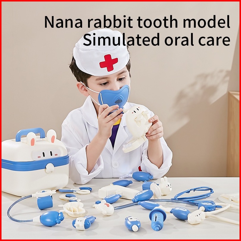 Nodia Set Mainan Dokter Anak-anak Mainan Stetoskop Anak Perempuan Permainan Peran Dokter Mainan Medis Koper Kelinci Hadi