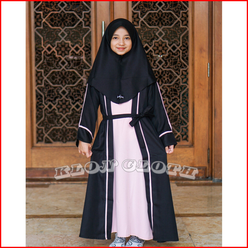 Gamis Anak Perempun Model Terbaru 2024 Umur 4-13tahun Tanggung Abaya Naura Hitam Turkey Remaja