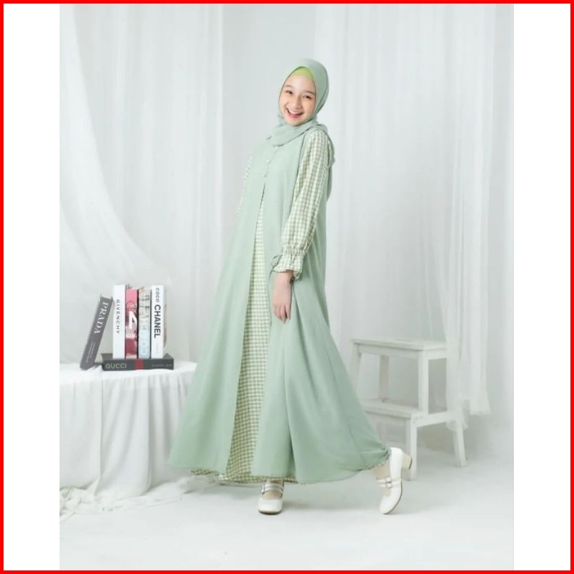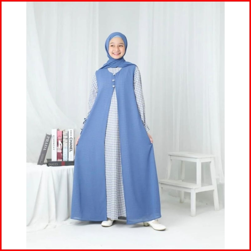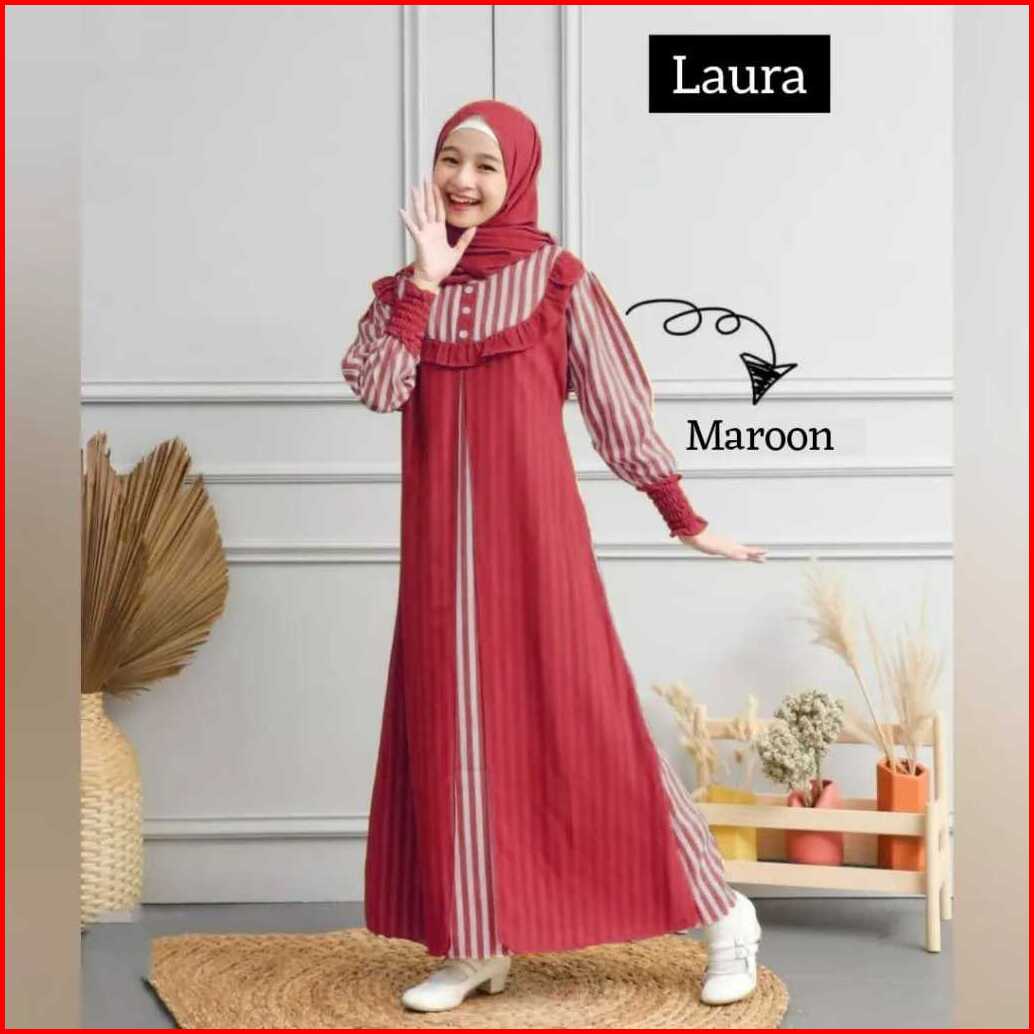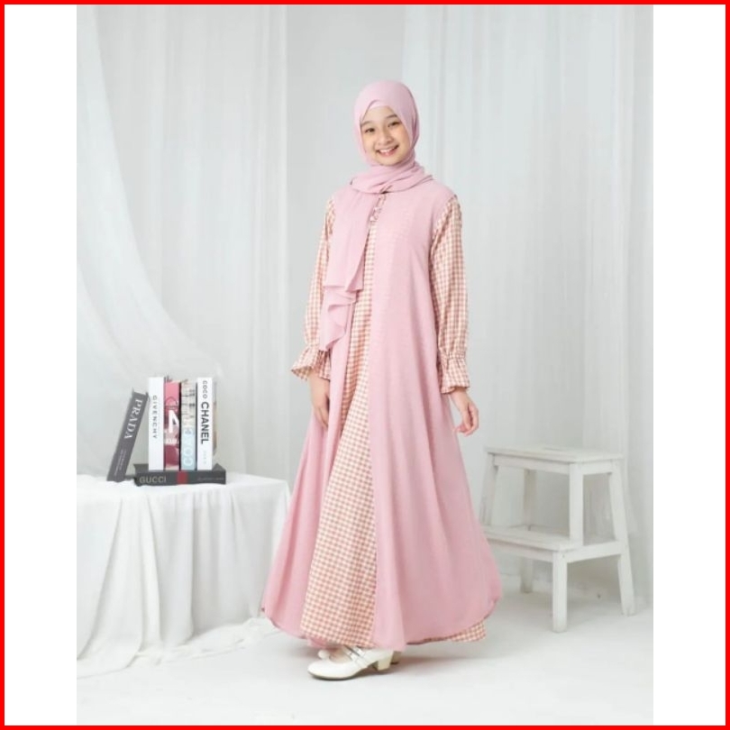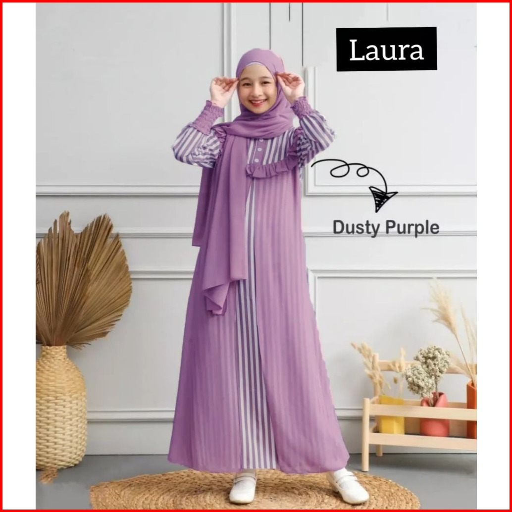 Gamis Anak Usia 10 11 12 13 14 15 Tahun Laura Dress Free Pashmina Bahan Shakila Premium Mix Ceruty