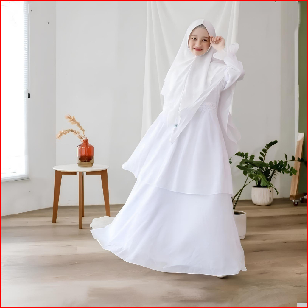 Gamis Anak Usia 10-11-12-13-14-15 Tahun Aryana Syar I Kids Bahan Cringkle Gamis Syar I Anak Warna Putih Baju Muslim Anak