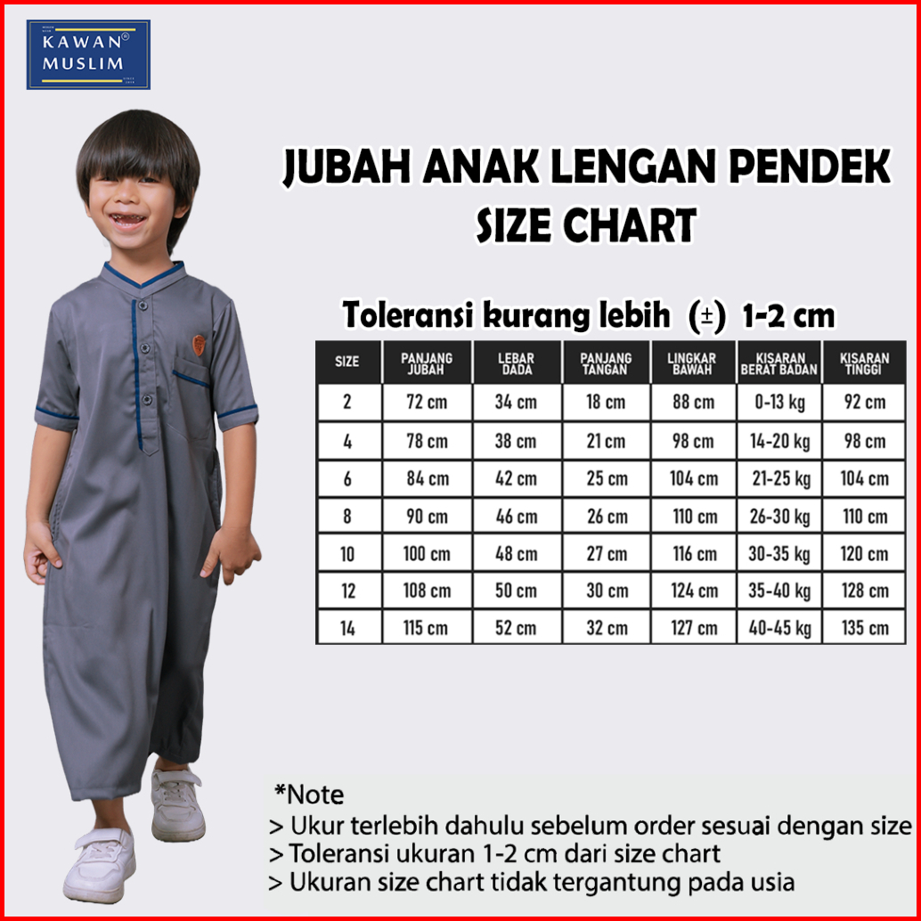 Kawan Muslim - Jubah Gamis Anak Modern Toyobo Premium Usia 1-14 Lengan Pendek Jba14