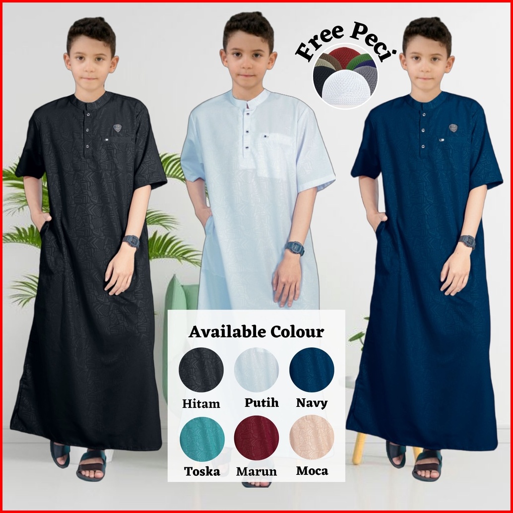 Gamis Embos Azmi Jubah Anak Laki Laki Usia 3-14 Thn Bahan Adem Gamis Anak Free Peci