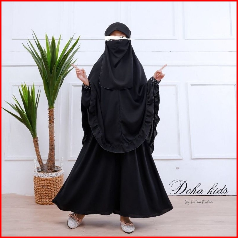 Set Gamis Anak Jilbab Cadar Jetblack Doha