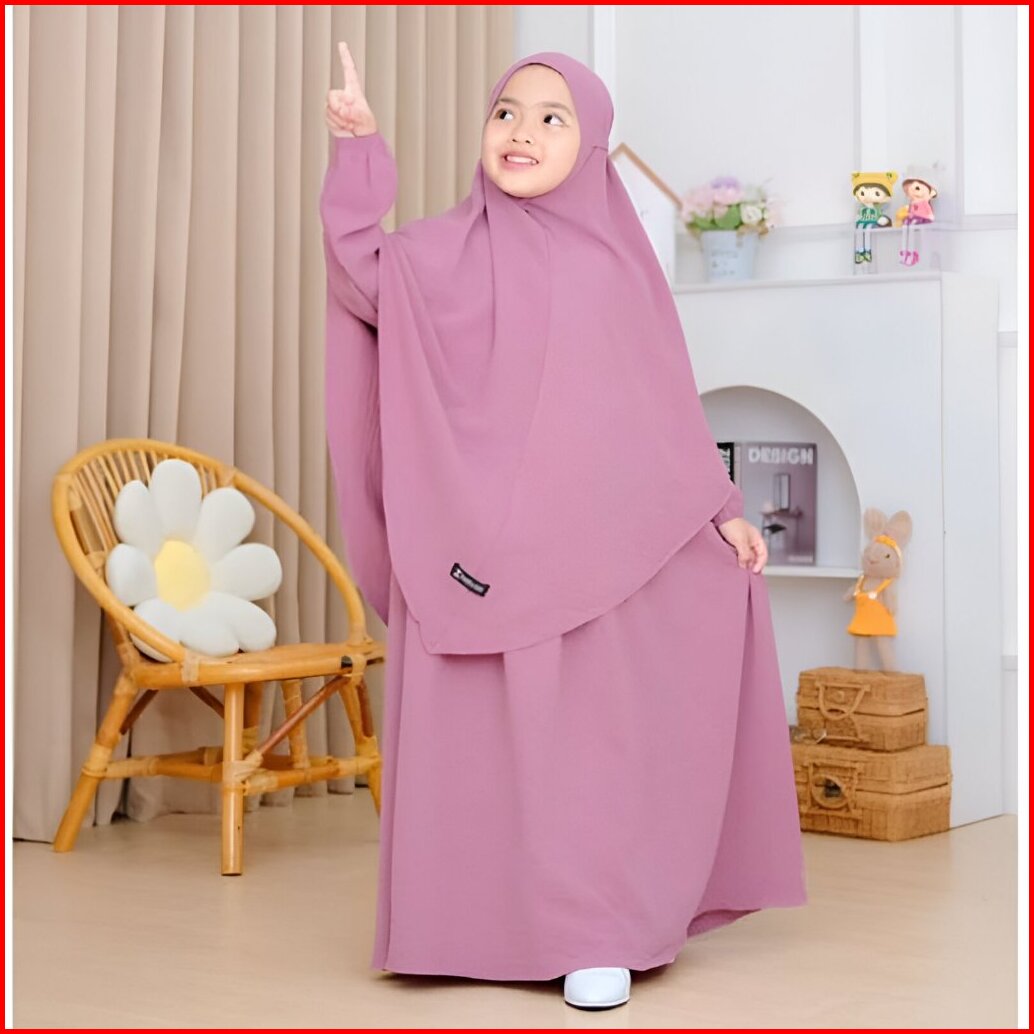 Gamis Syar I Anak Aluna Set Hijab Baju Anak Perempuan Plus Kerudung Pakaian Murah Terbaru