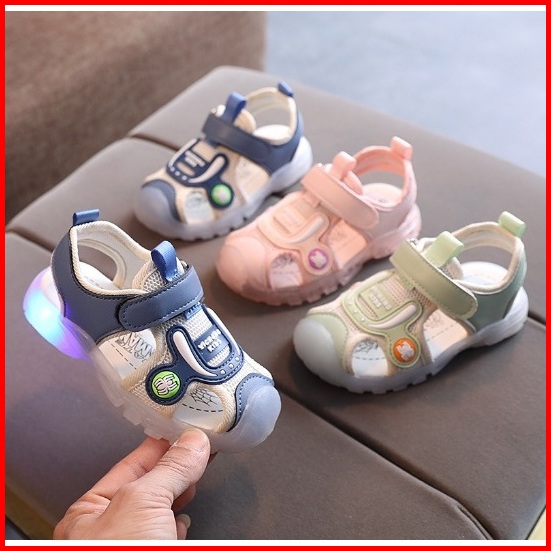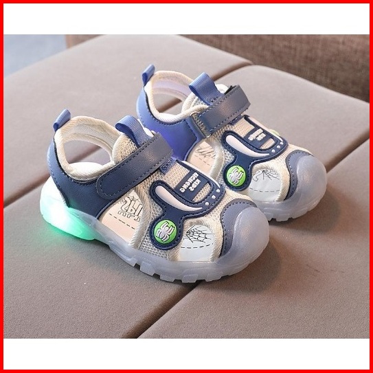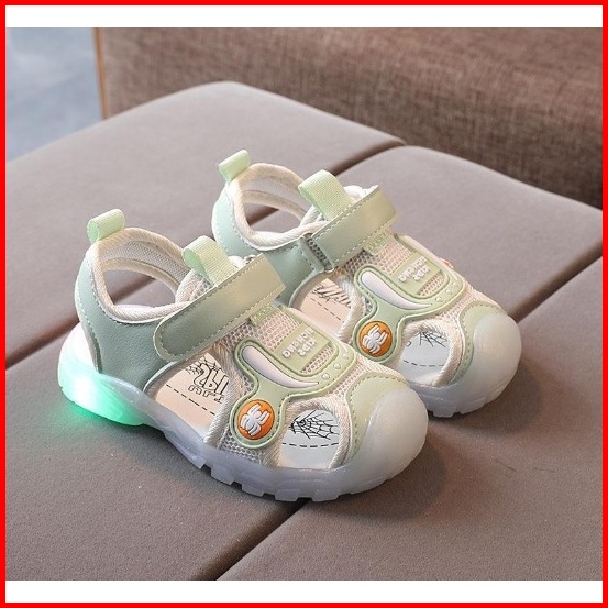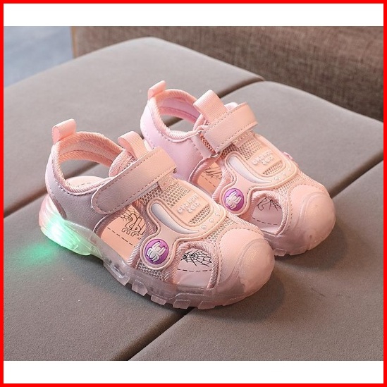 860 Sandal Sepatu Unisex Anak Led Tapak Transparant Velcro Spider