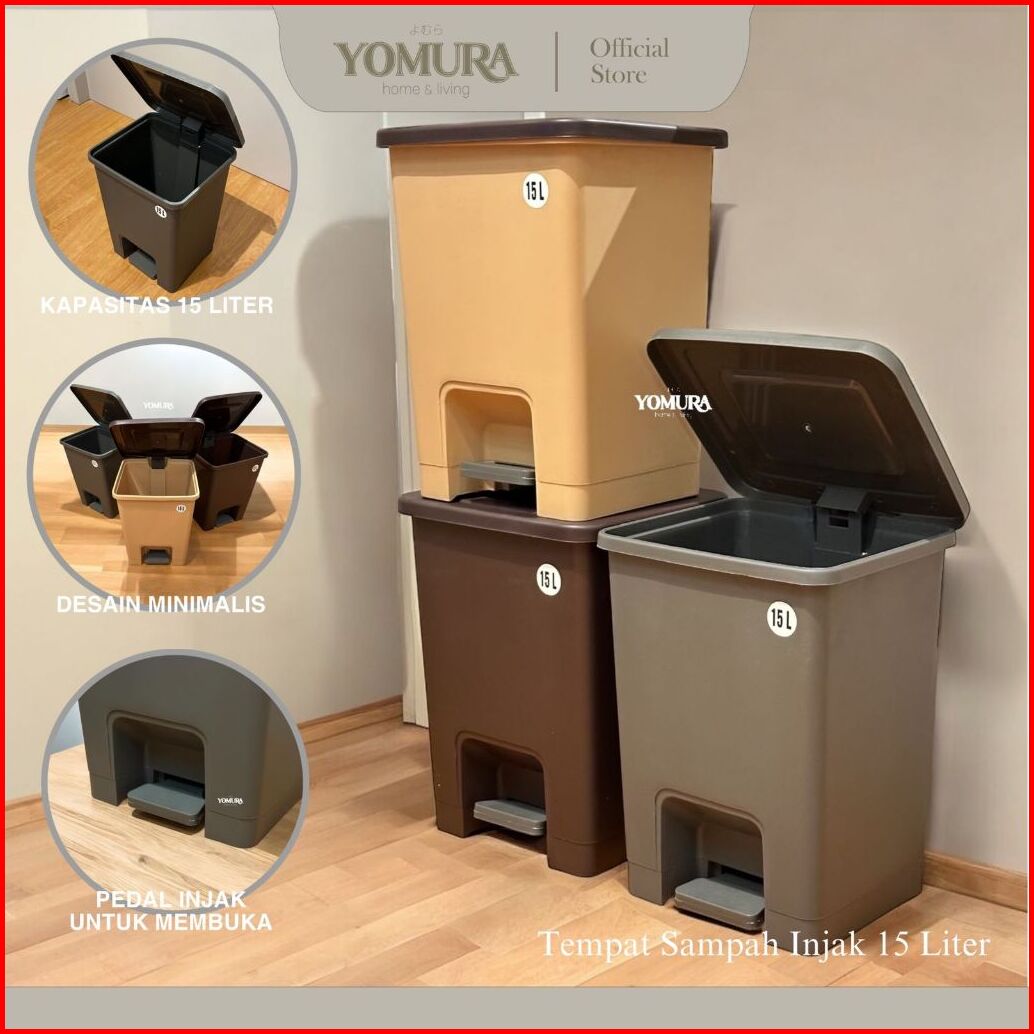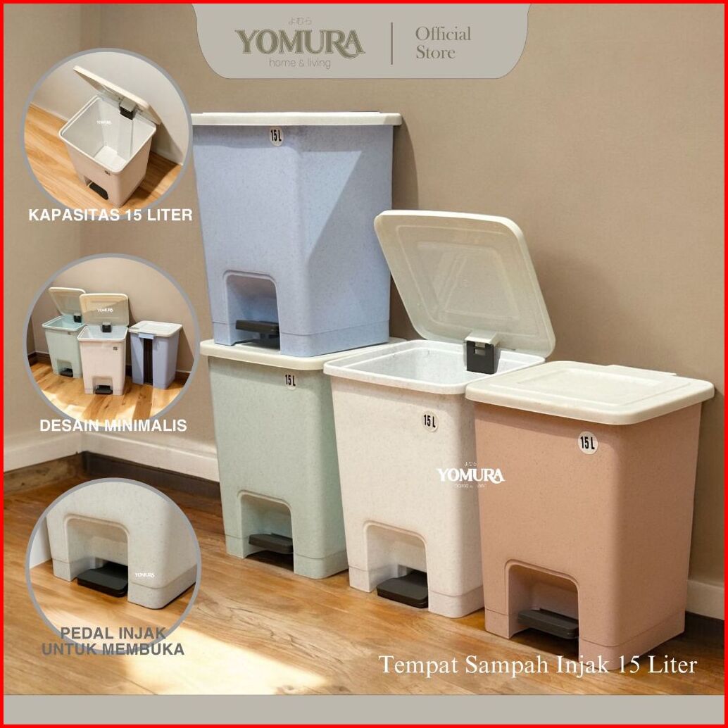 Yomura Tempat Sampah Injak 15 Liter Pastel Color - Tong Sampah Plastik Trash Bin Kotak Sampah Dapur Dengan Pedal 15l Put