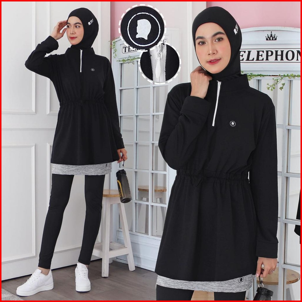 Hitjab - Tunik Serut Sport Olahraga Wanita Untuk Bersepeda Padel Lari Senam Fitness 8809