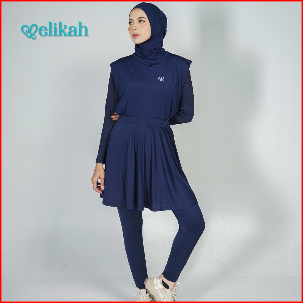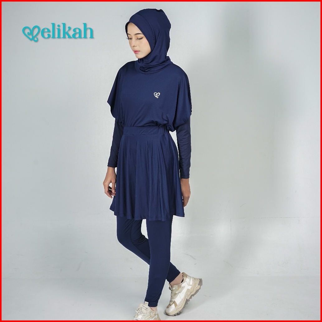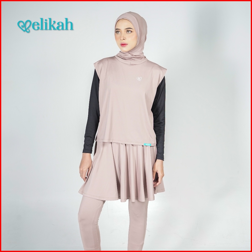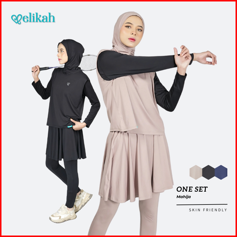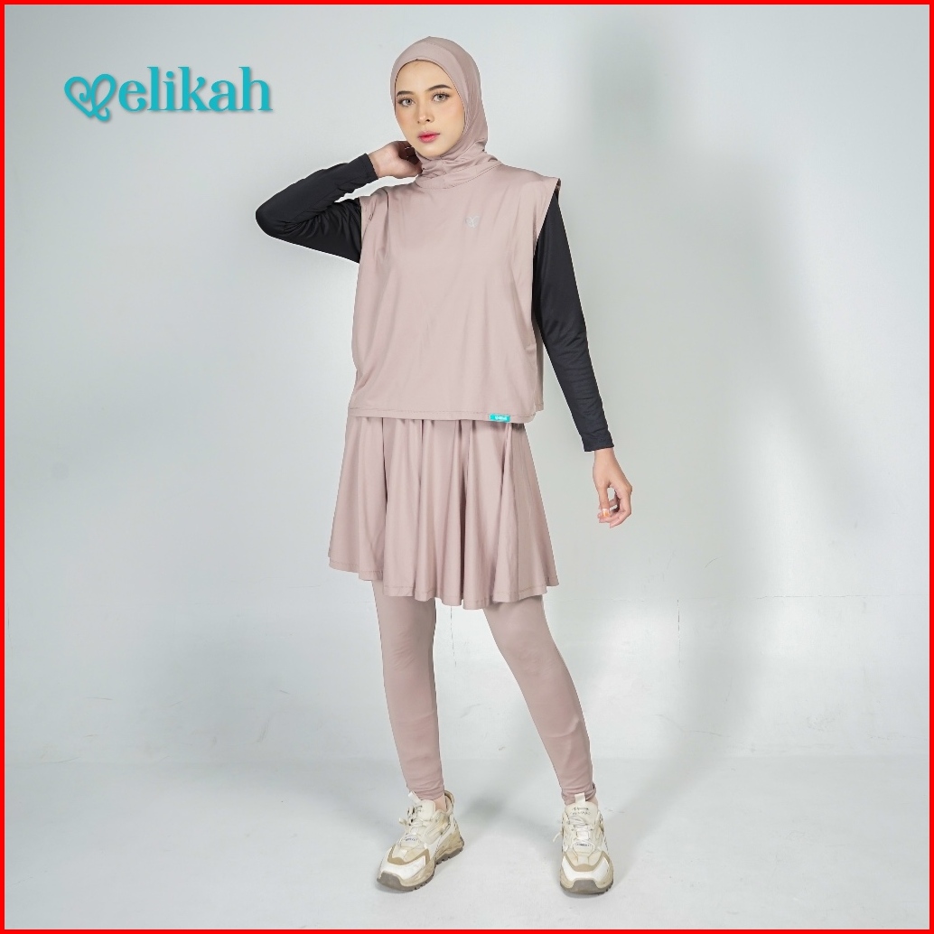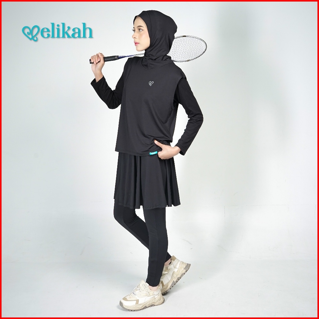 Elikah One Set Baju Olahraga Wanita Muslim Legging Rok Mahija Reguler Outer Sport Hijab Kerudung