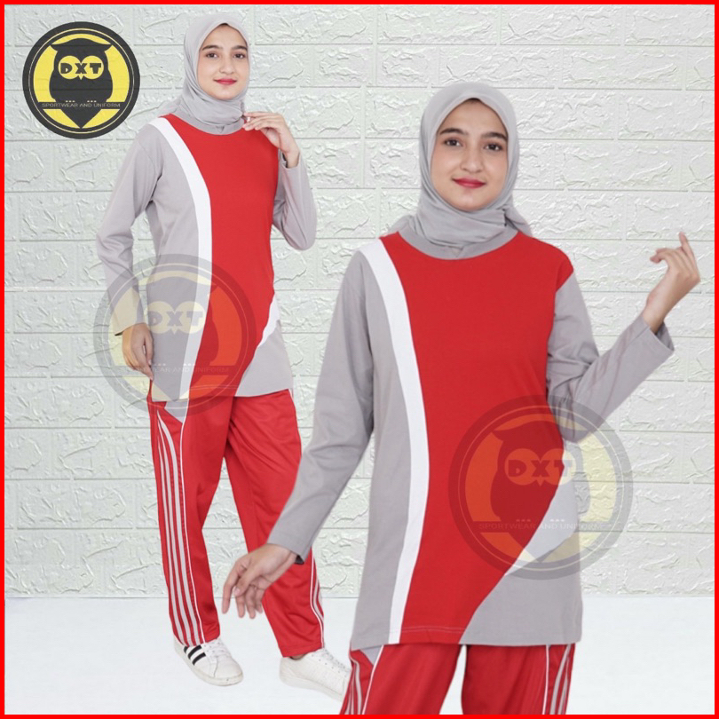 Baju Senam Wanita Muslimah Stelan Training Wanita Muslim Baju Olahraga Wanita Semi Tunik Terbaru