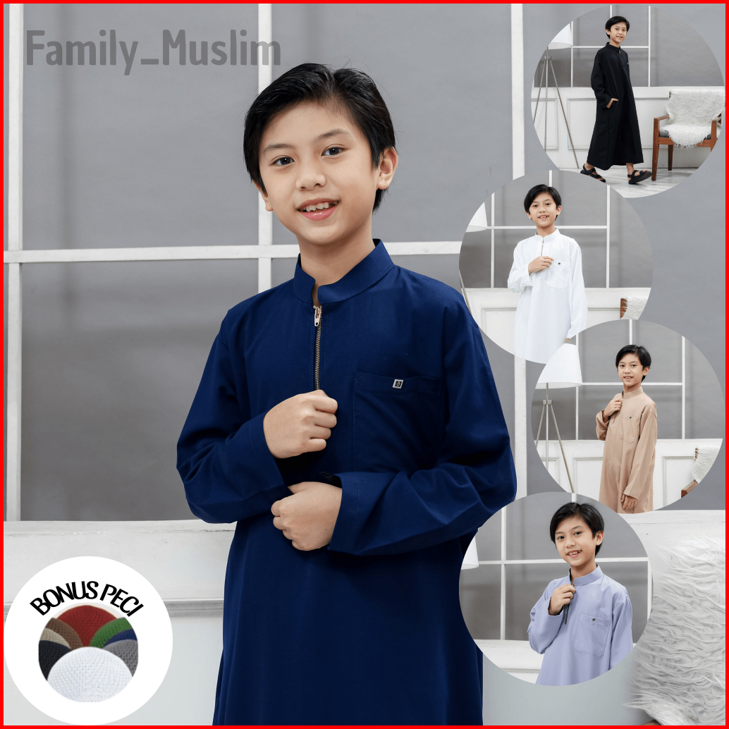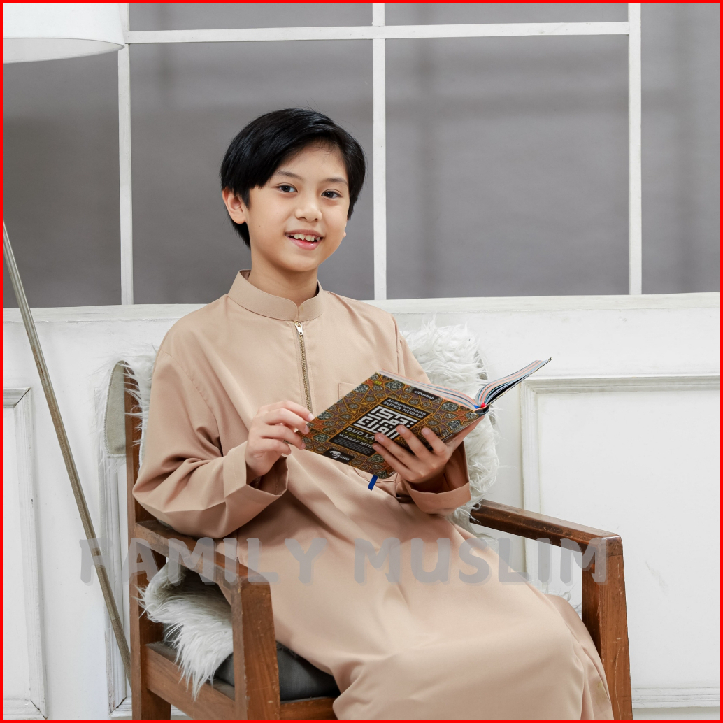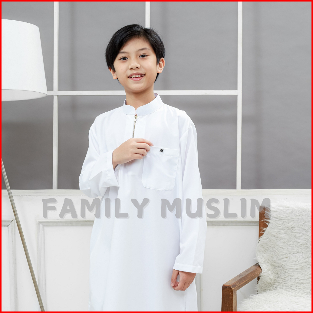 Family Muslim - Jubah Muslim Anak Laki Laki Usia 7-14 Tahun Katun Premium Lengan Panjang Resleting