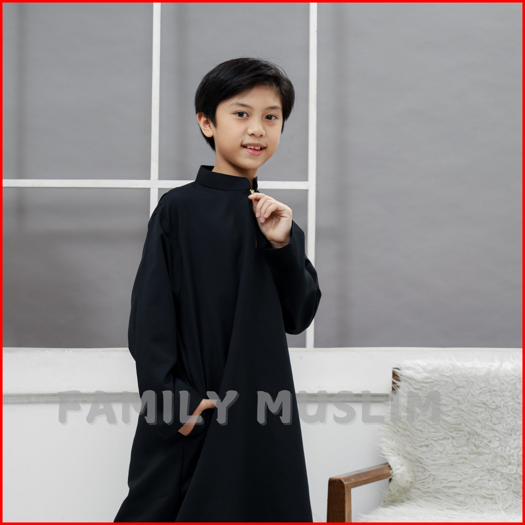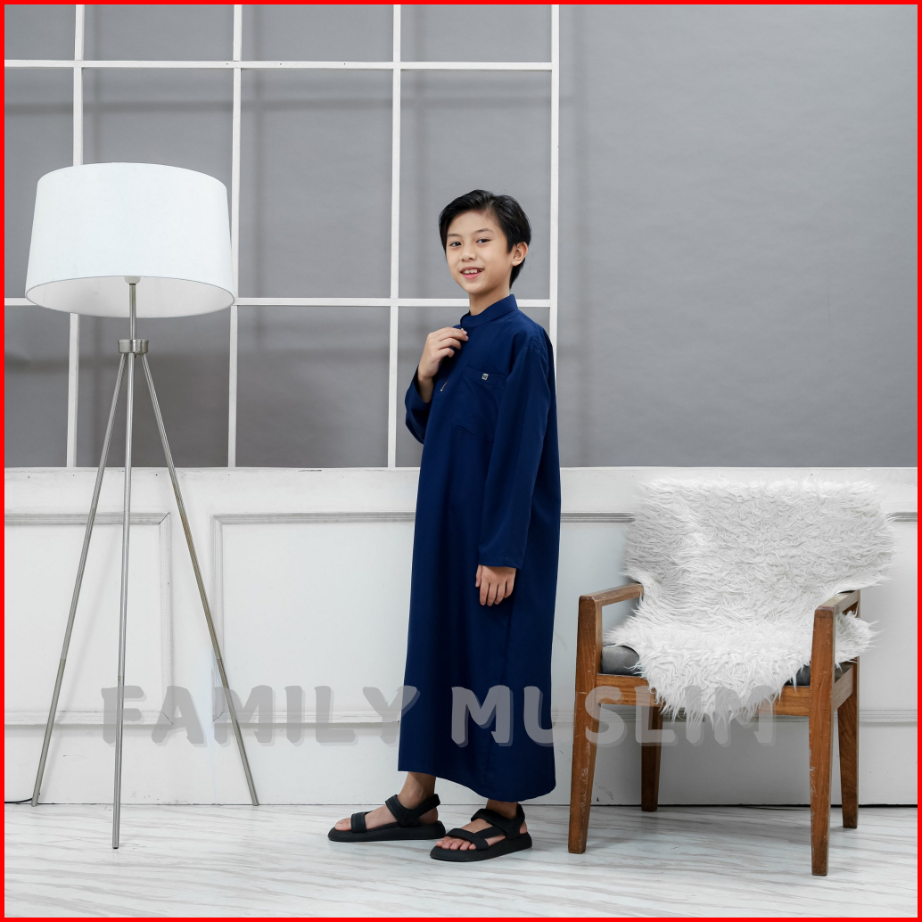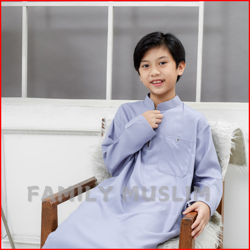 Family Muslim - Jubah Muslim Anak Laki Laki Usia 7-14 Tahun Katun Premium Lengan Panjang Resleting