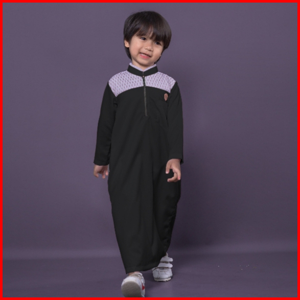 Kawan Muslim - Baju Jubah Gamis Anak Laki Laki Warna Hitam Premium Usia 1-14 Tahun Lengan Panjang