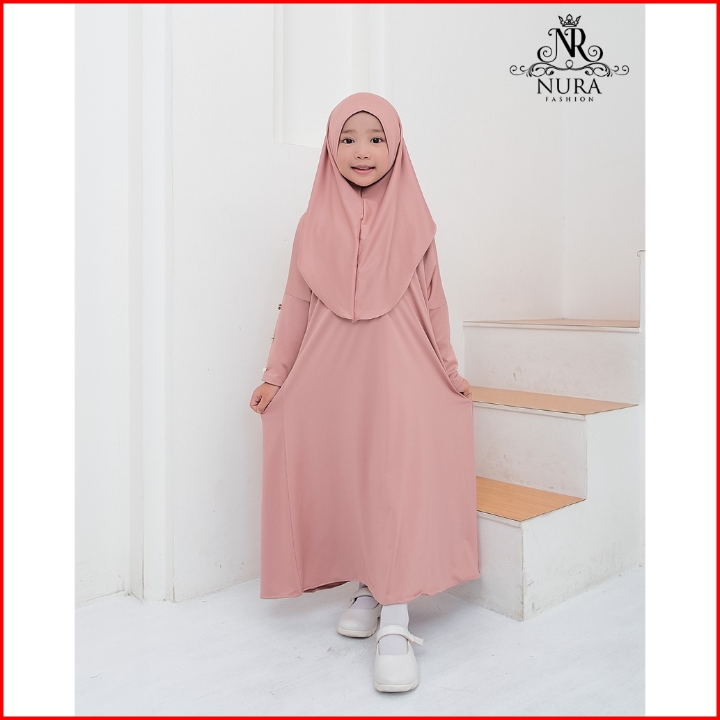 Gamis Set Hijab Anak Perempuan Jersey Anak 3-14 Tahun One Set Hijab Gamis Anak Tanggung