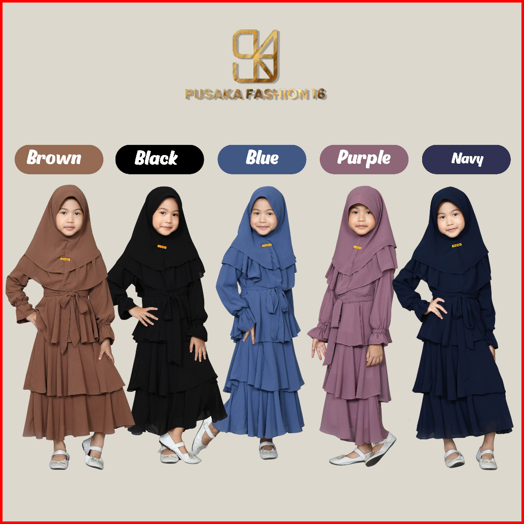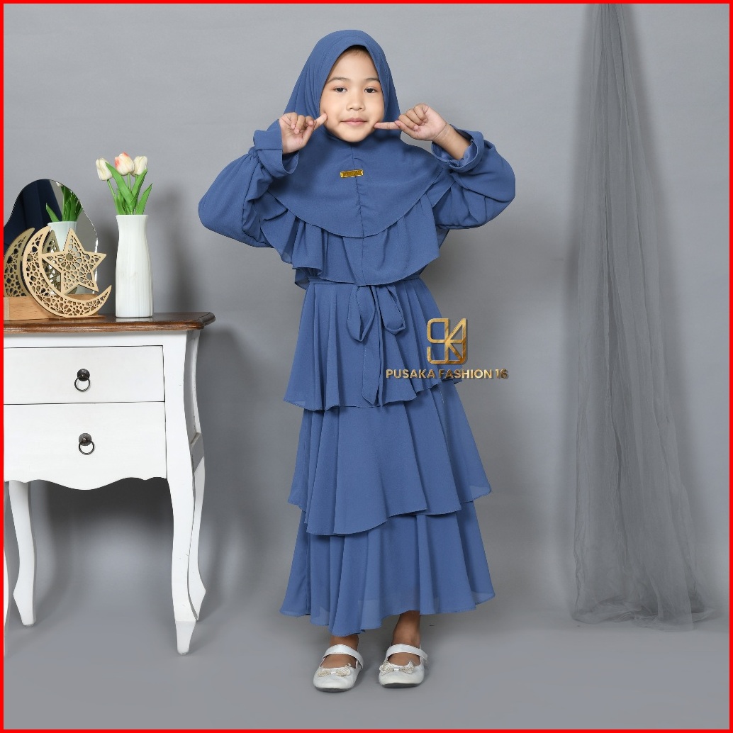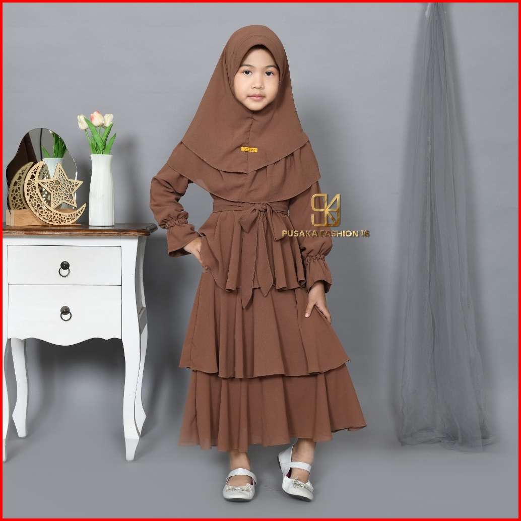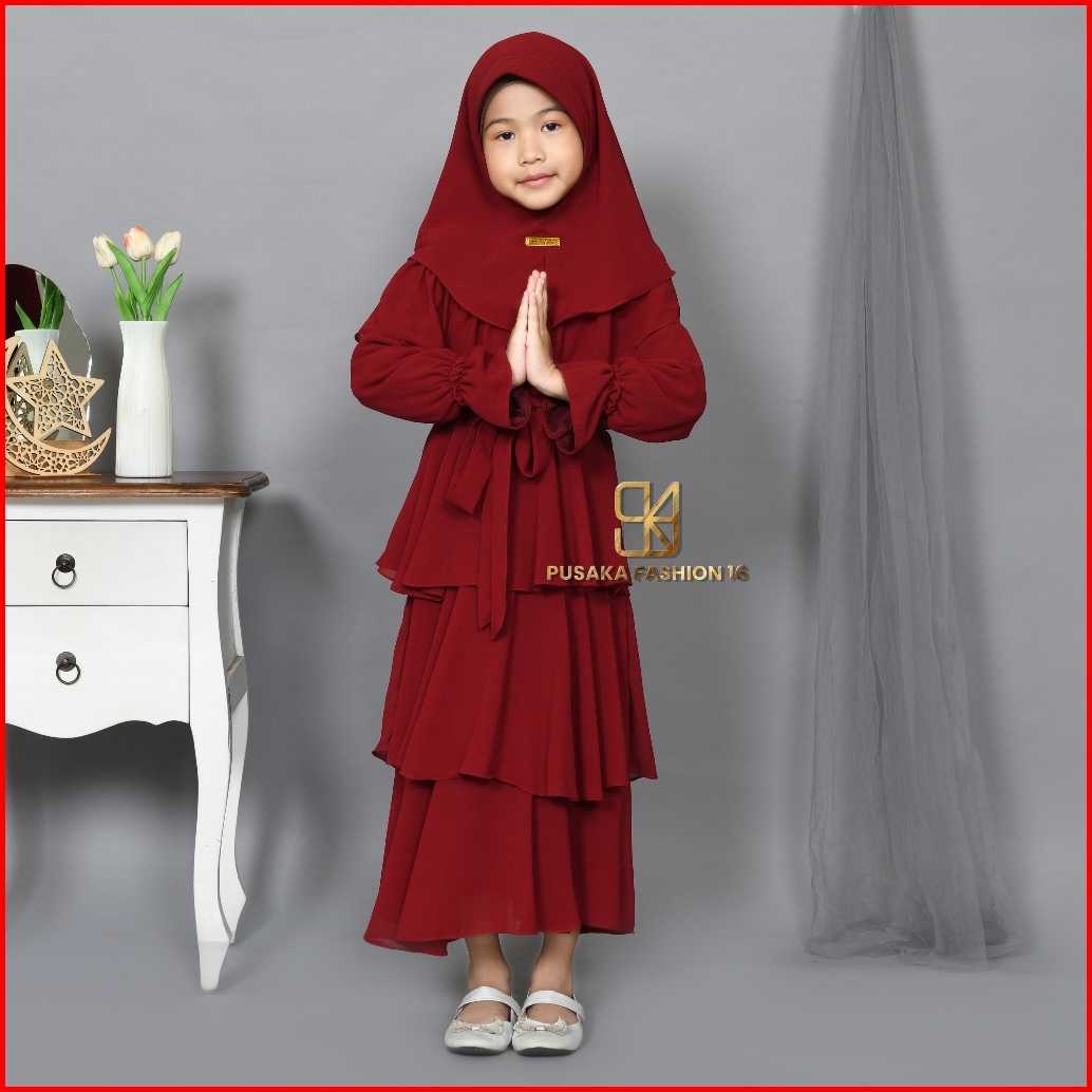 Fairuz Gamis Pesta Set Kerudung Anak Perempuan Muslim Usia 2-9 Tahun Susun 3 Ceruty Pusaka Fashion
