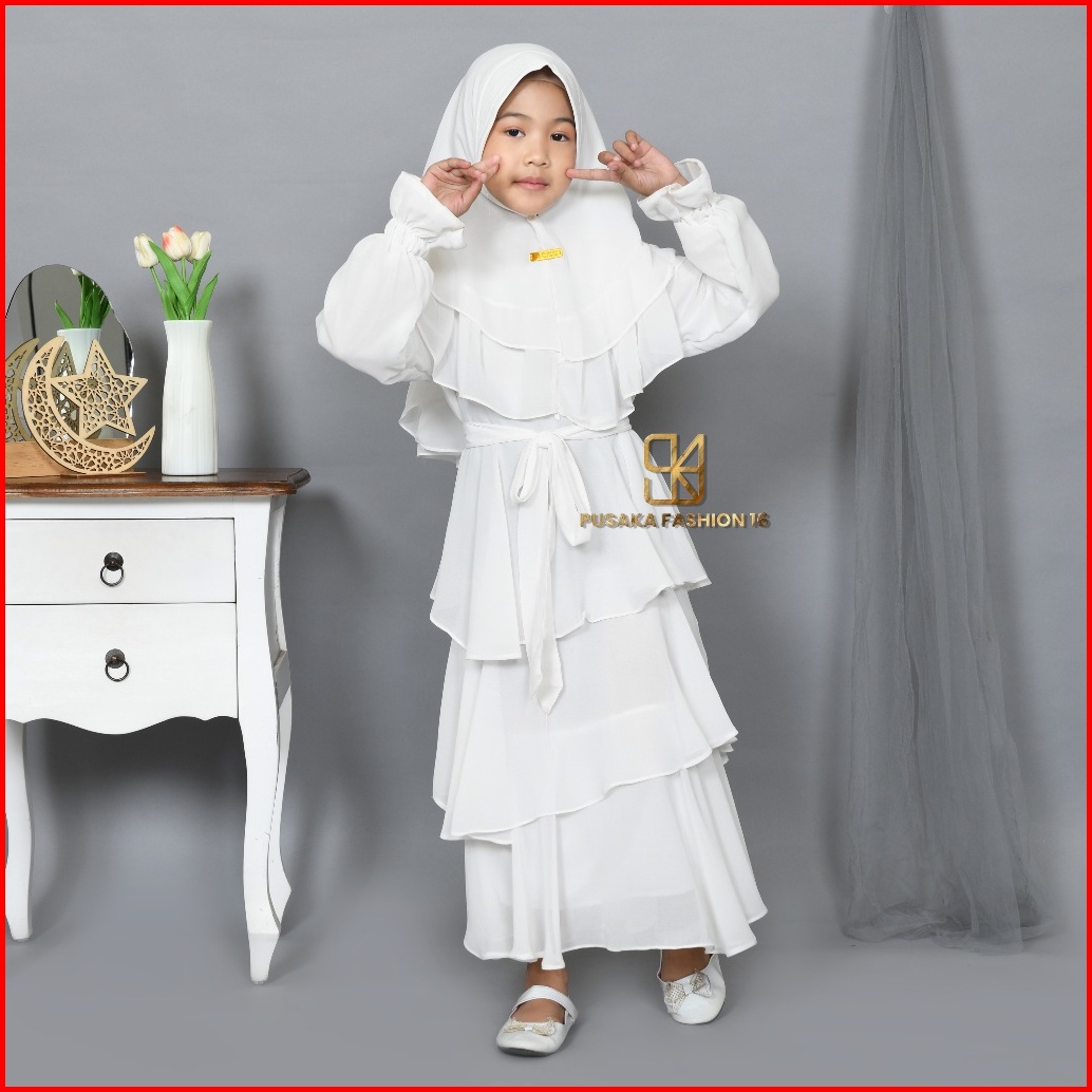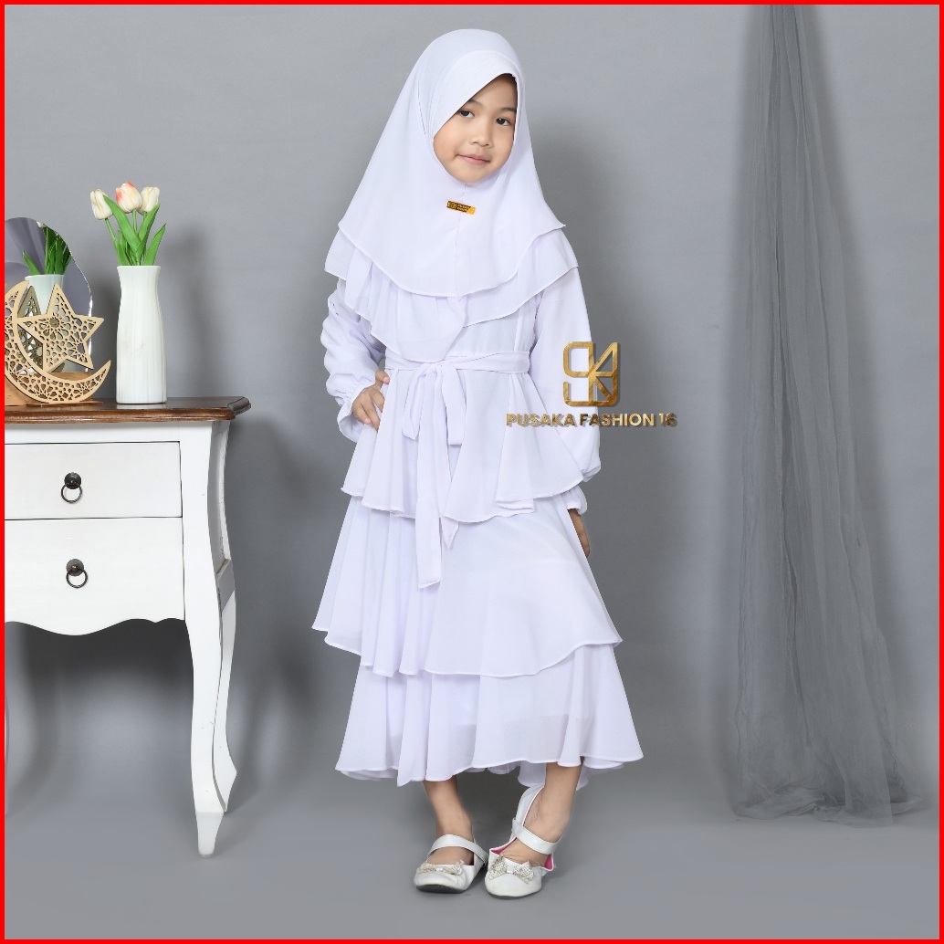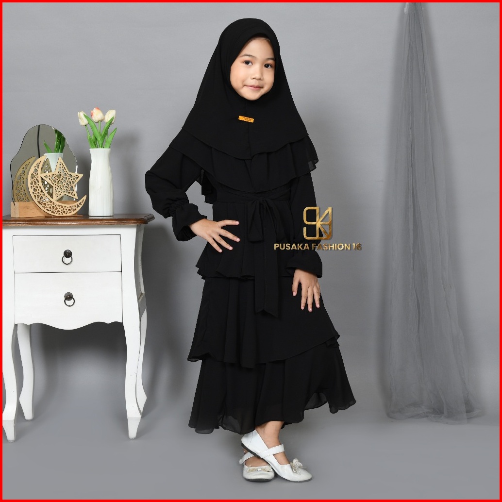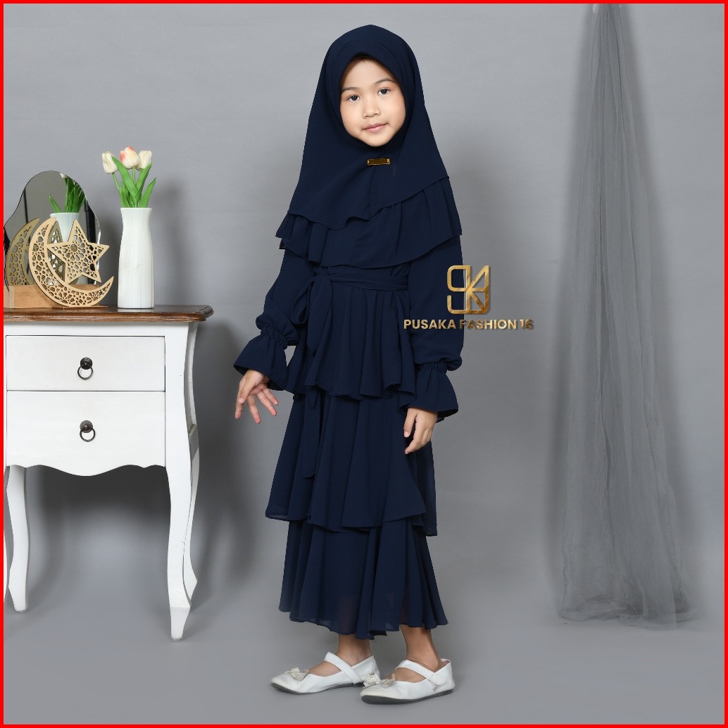Fairuz Gamis Pesta Set Kerudung Anak Perempuan Muslim Usia 2-9 Tahun Susun 3 Ceruty Pusaka Fashion