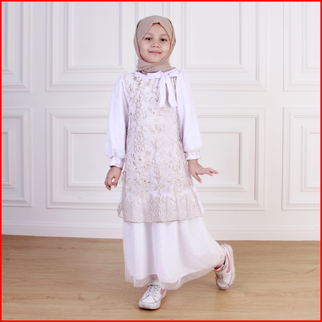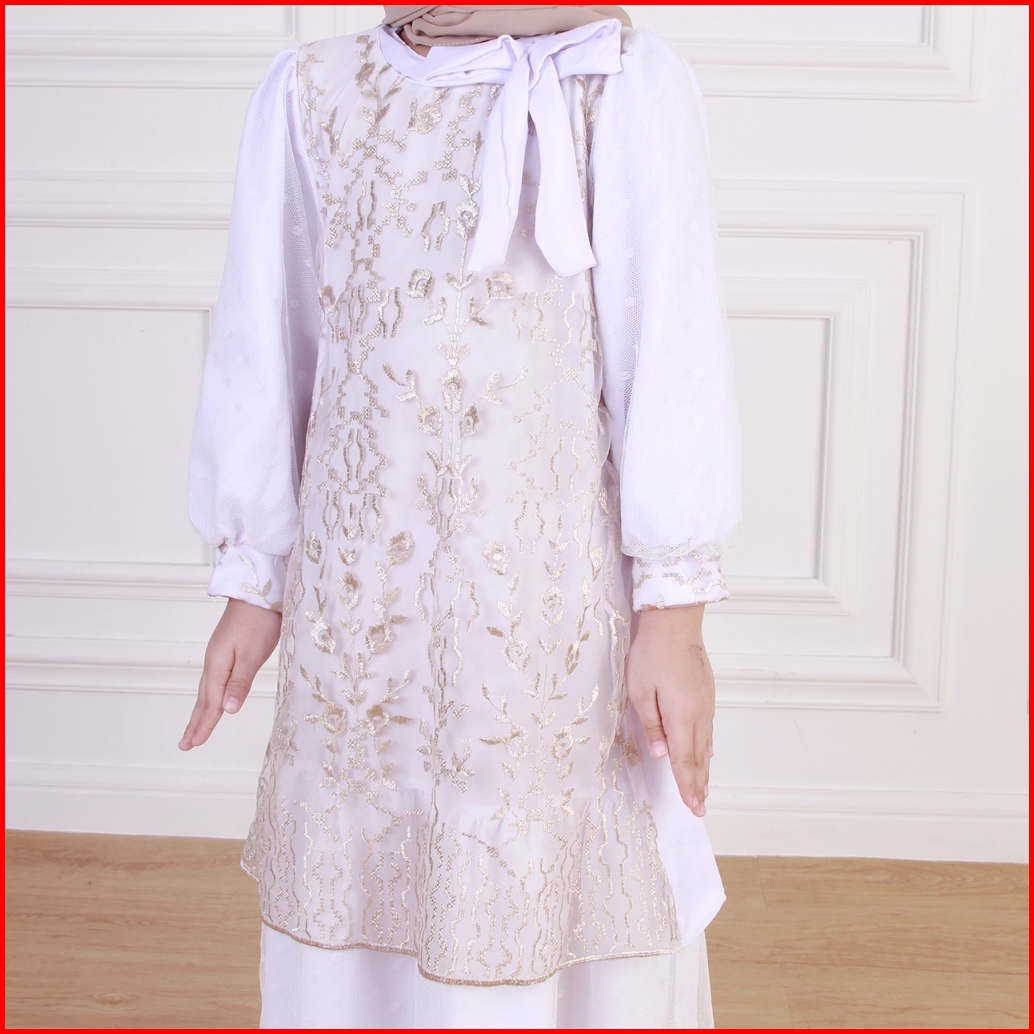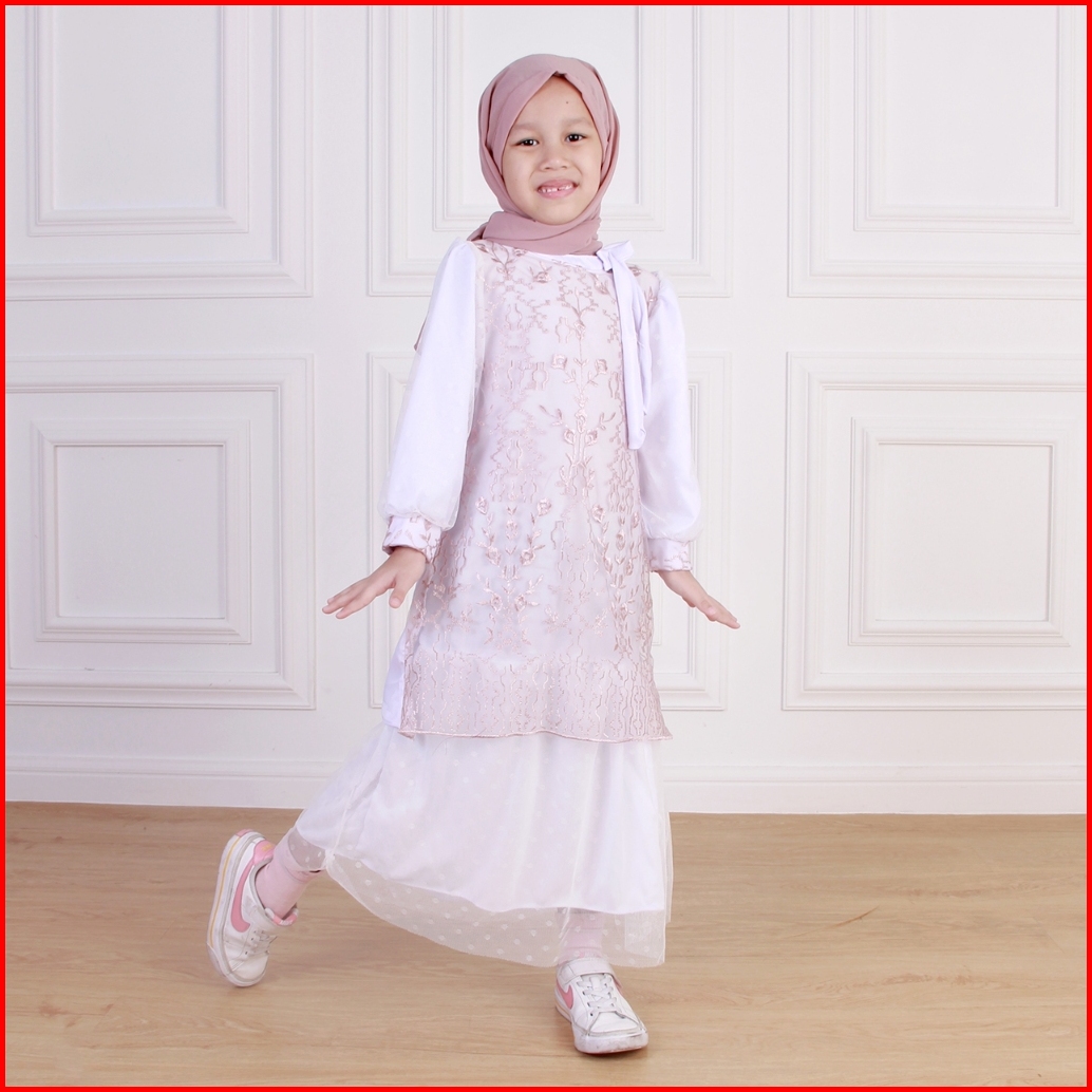 Dungdungkids Gamis Anak Claudya Tile Bordir Mix Shakila Free Pashmina Tali 3 - 12 Tahun