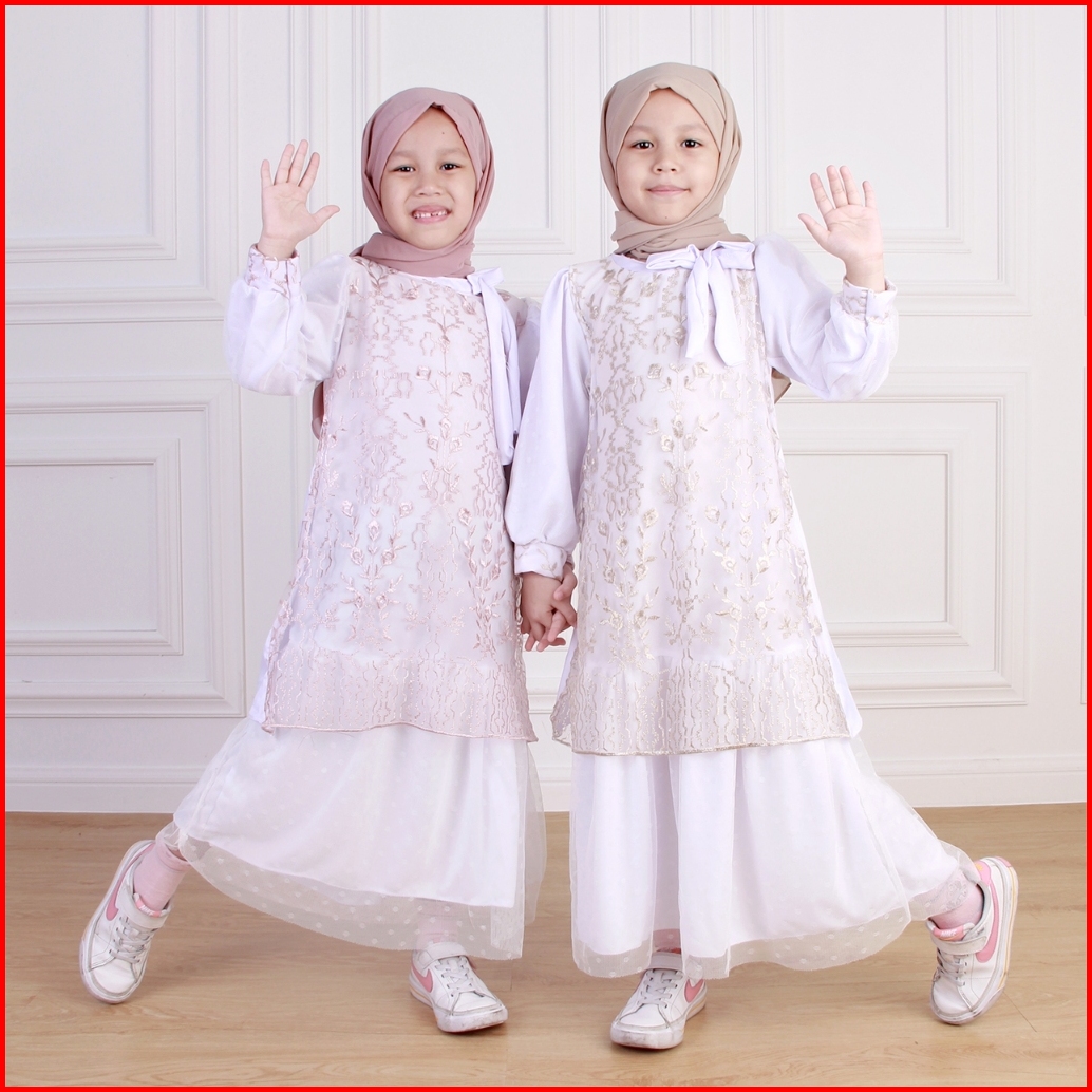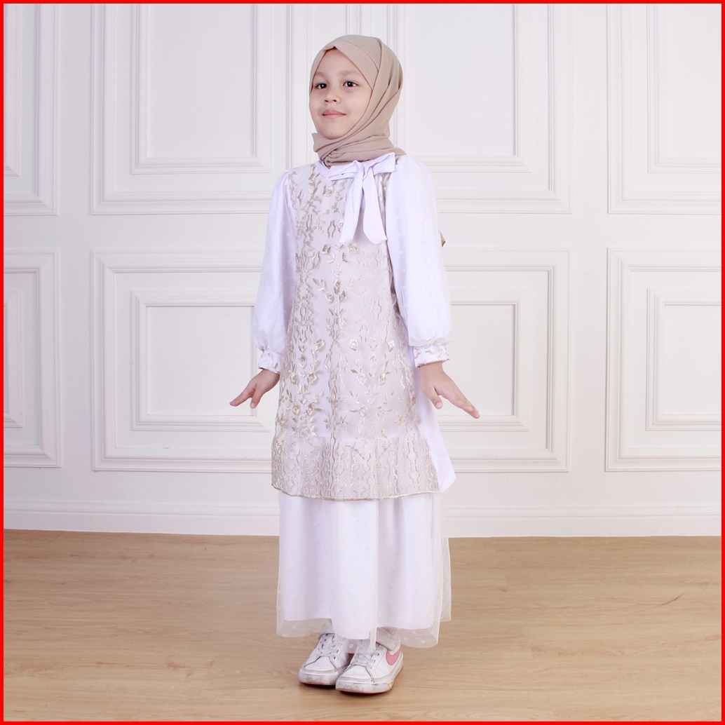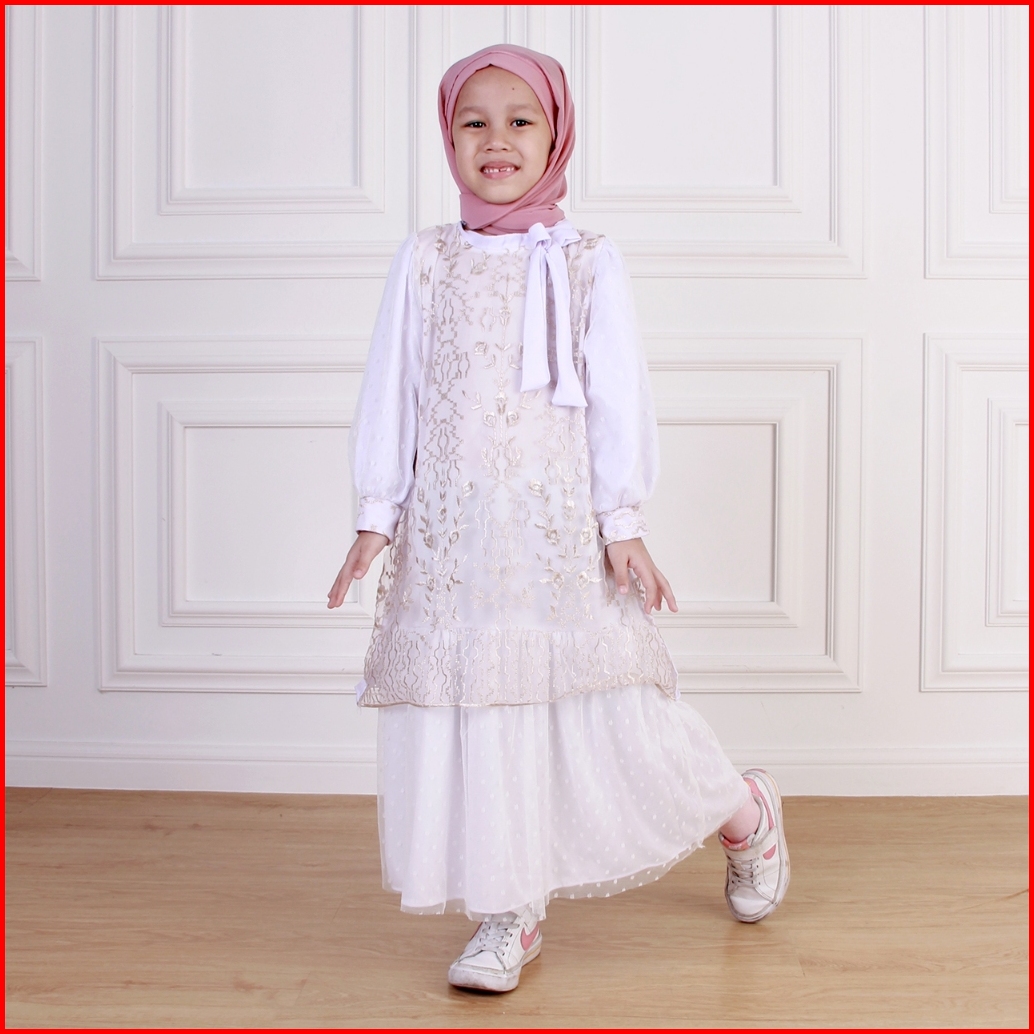 Dungdungkids Gamis Anak Claudya Tile Bordir Mix Shakila Free Pashmina Tali 3 - 12 Tahun