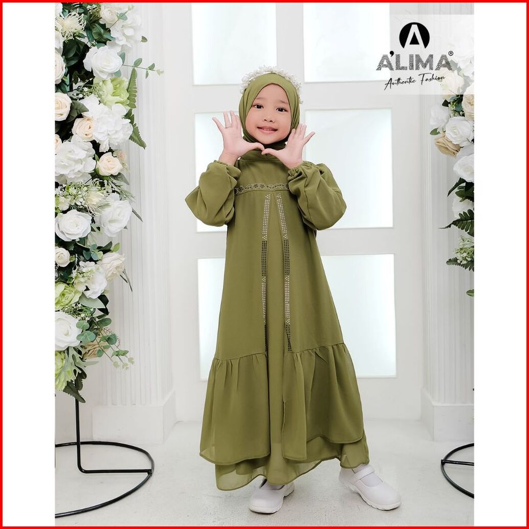 Baju Gamis Muslimah Anak Perempuan Dua Layer Set Phasmina Bahan Ceruty Bebydoll Variasi Swarovski Usia 5-14 Tahun Ukuran