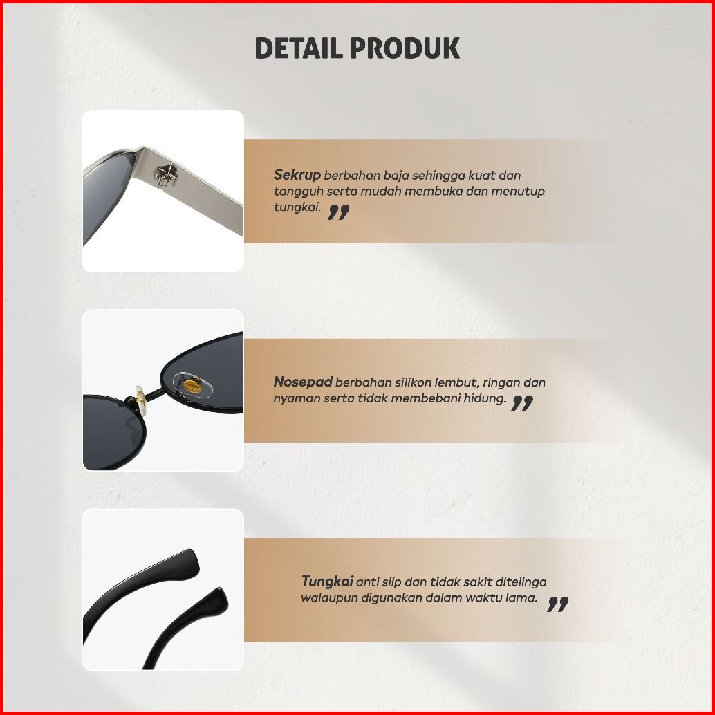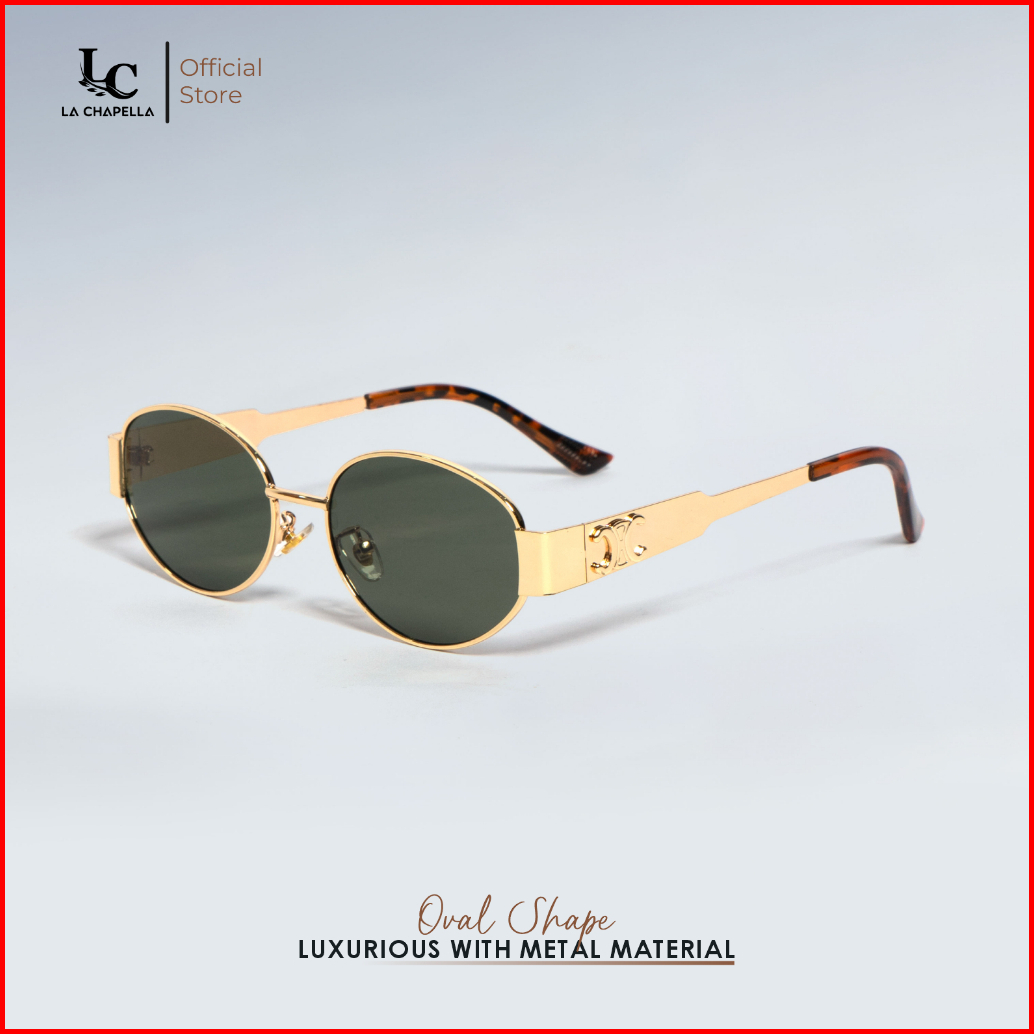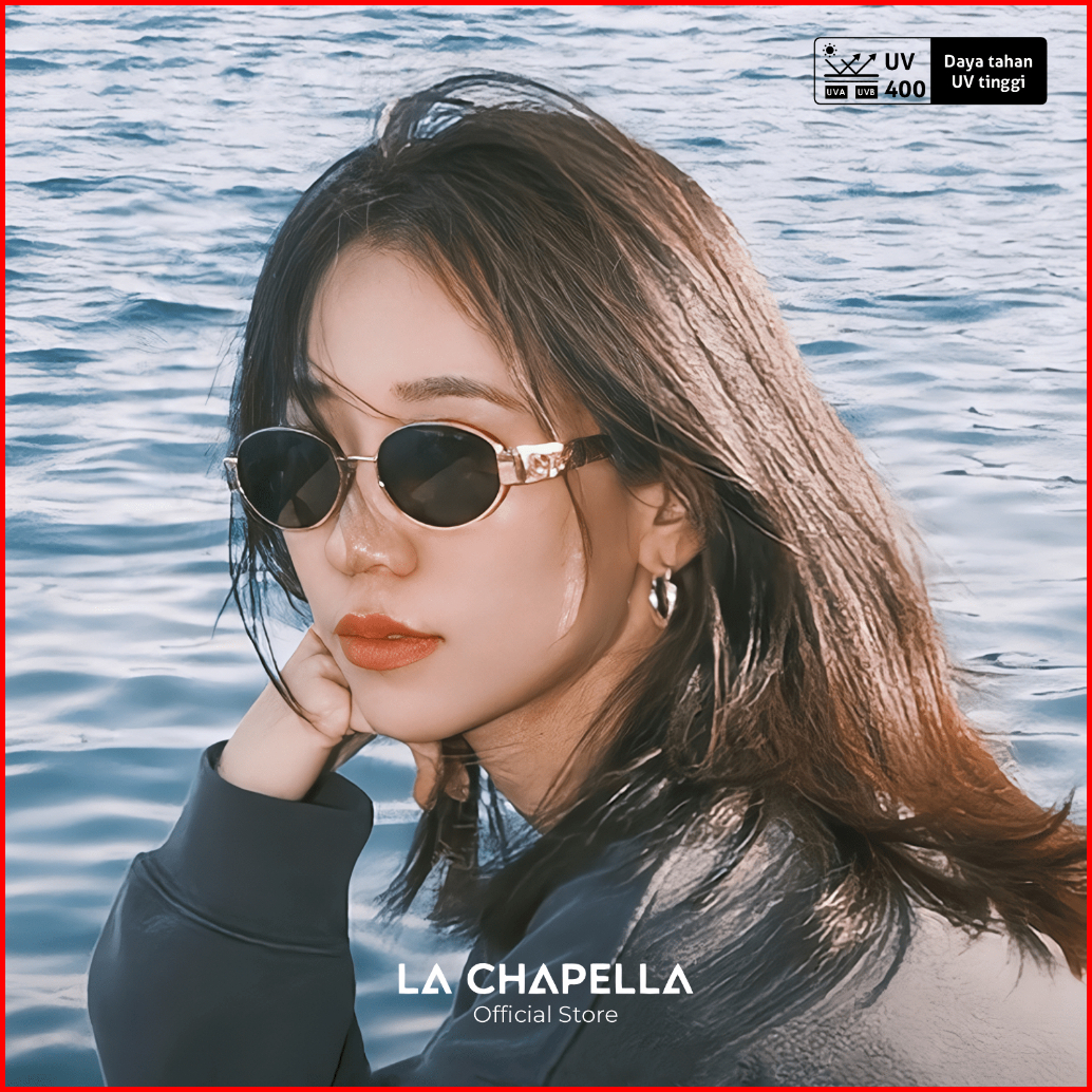 La Chapella Kacamata Hitam Anti Silau Sunglasses Retro Vintage Oval Pria Wanita Metal Uv400 4235 - 1038 - S2968