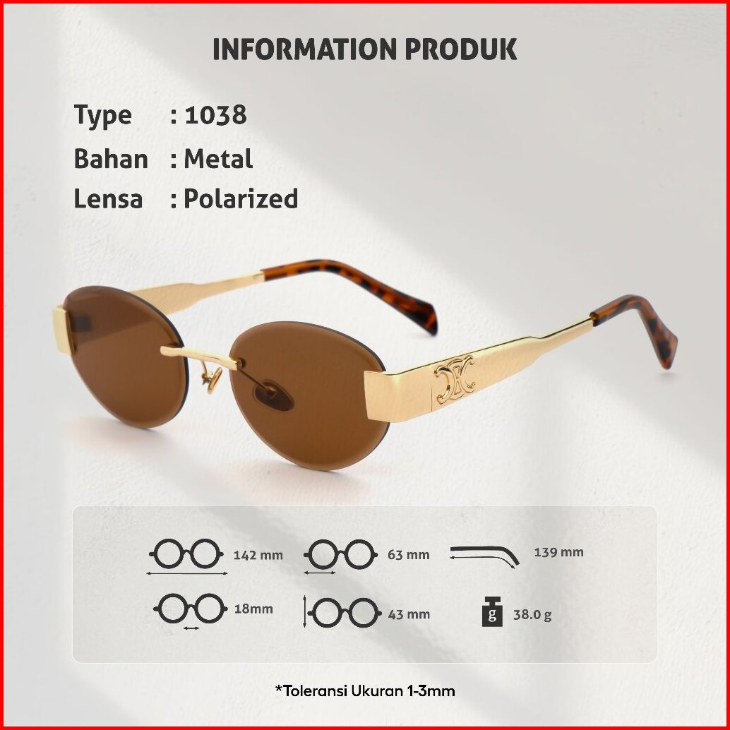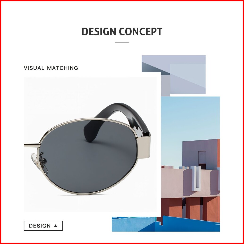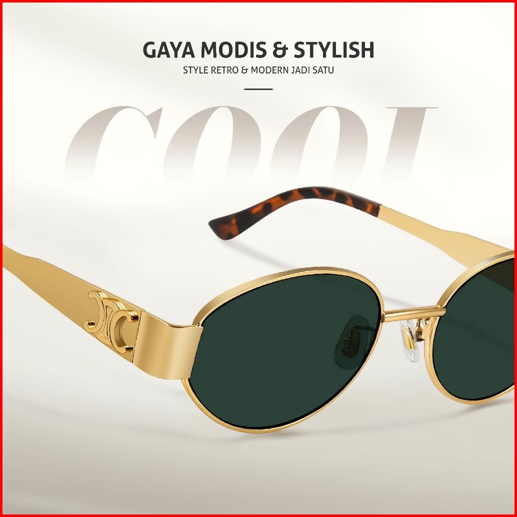 La Chapella Kacamata Hitam Anti Silau Sunglasses Retro Vintage Oval Pria Wanita Metal Uv400 4235 - 1038 - S2968