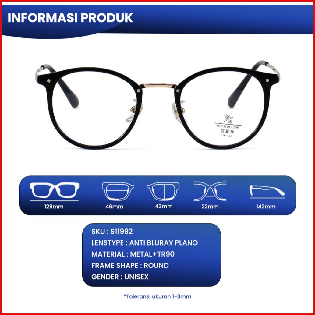 Iooi Kacamata Anti Radiasi Blueray Photocromic Minus Bulat Fashion Pria Wanita Bahan Metaltr S11992