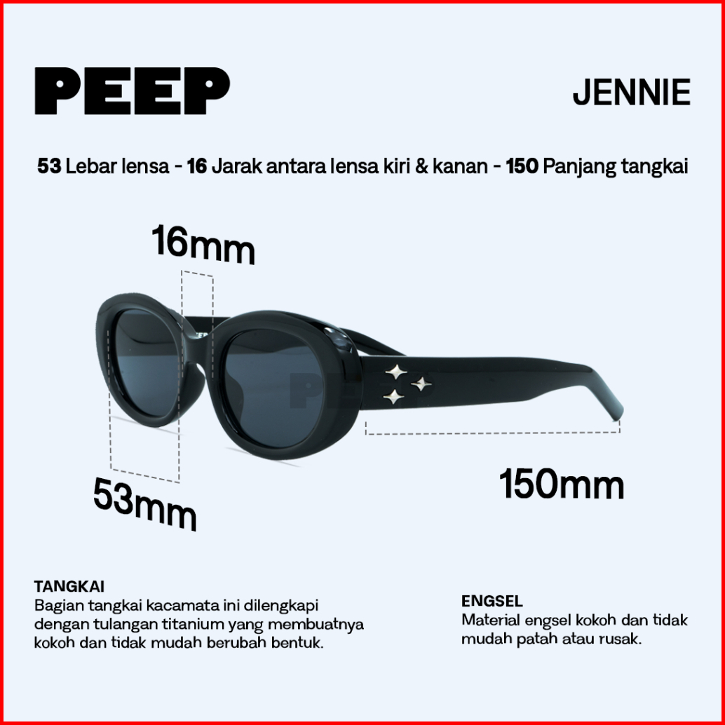 Peep Eyewear - Jennie Frame Kacamata Hitam Sunglasses Unisex Pria Wanita