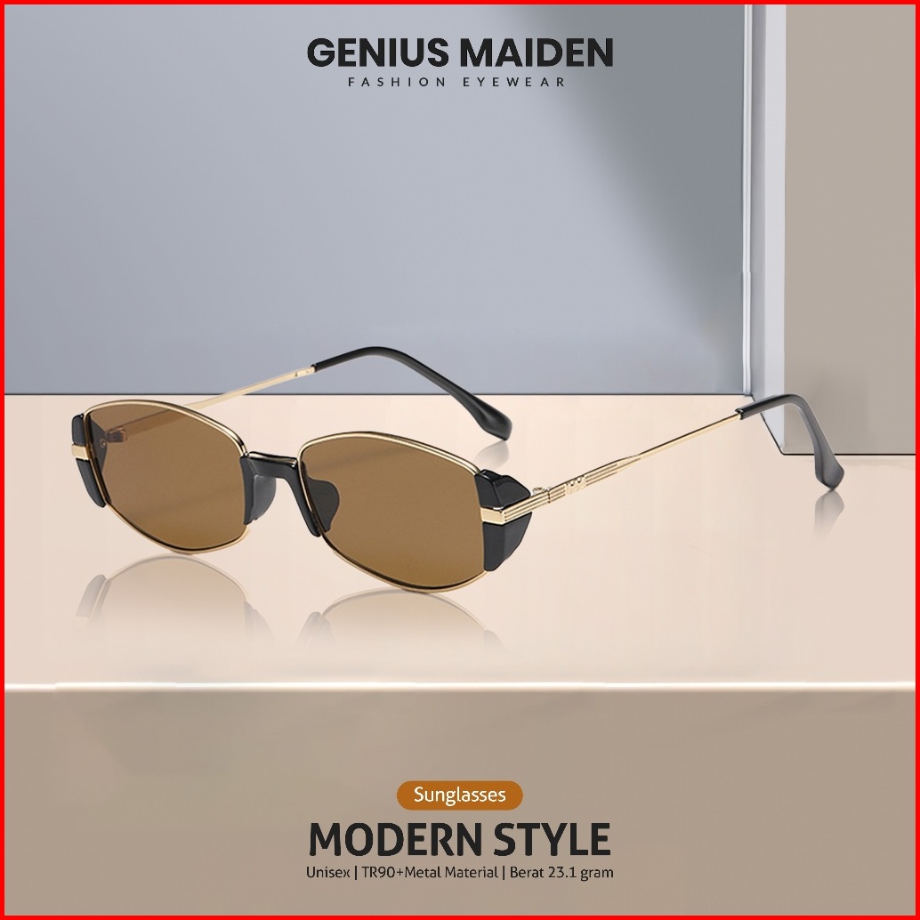 Genius Maiden Kacamata Hitam Sunglasses Fashion Korea Bahan Metal Bentuk Oval Retro Pria Wanita Uv400 Polarized Slim Tre