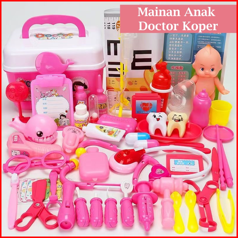 Mainan Dokter Anak Koper Mainan Anak Anak Dokter Dokteran Set Lengkap Perempuan Playset 75pcs