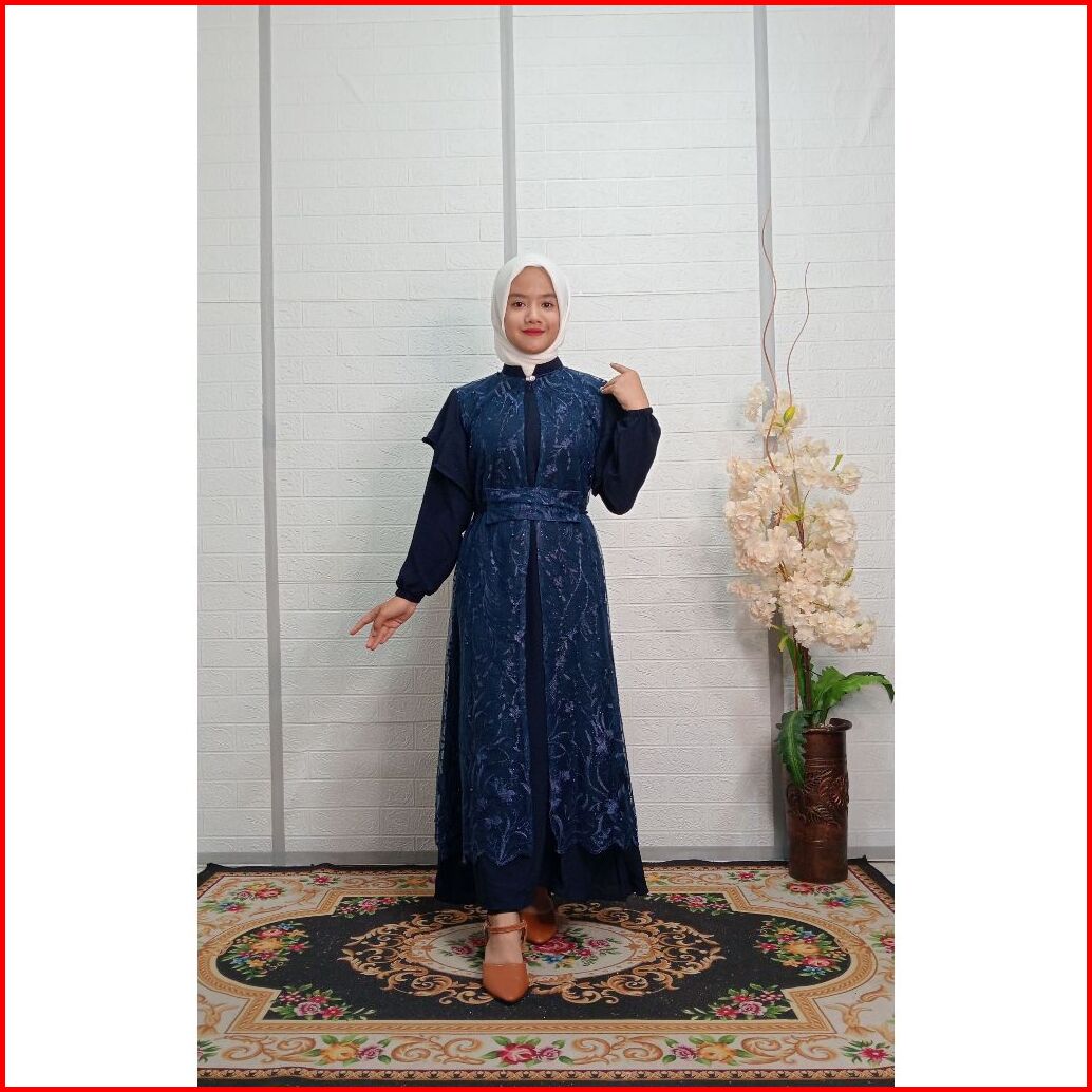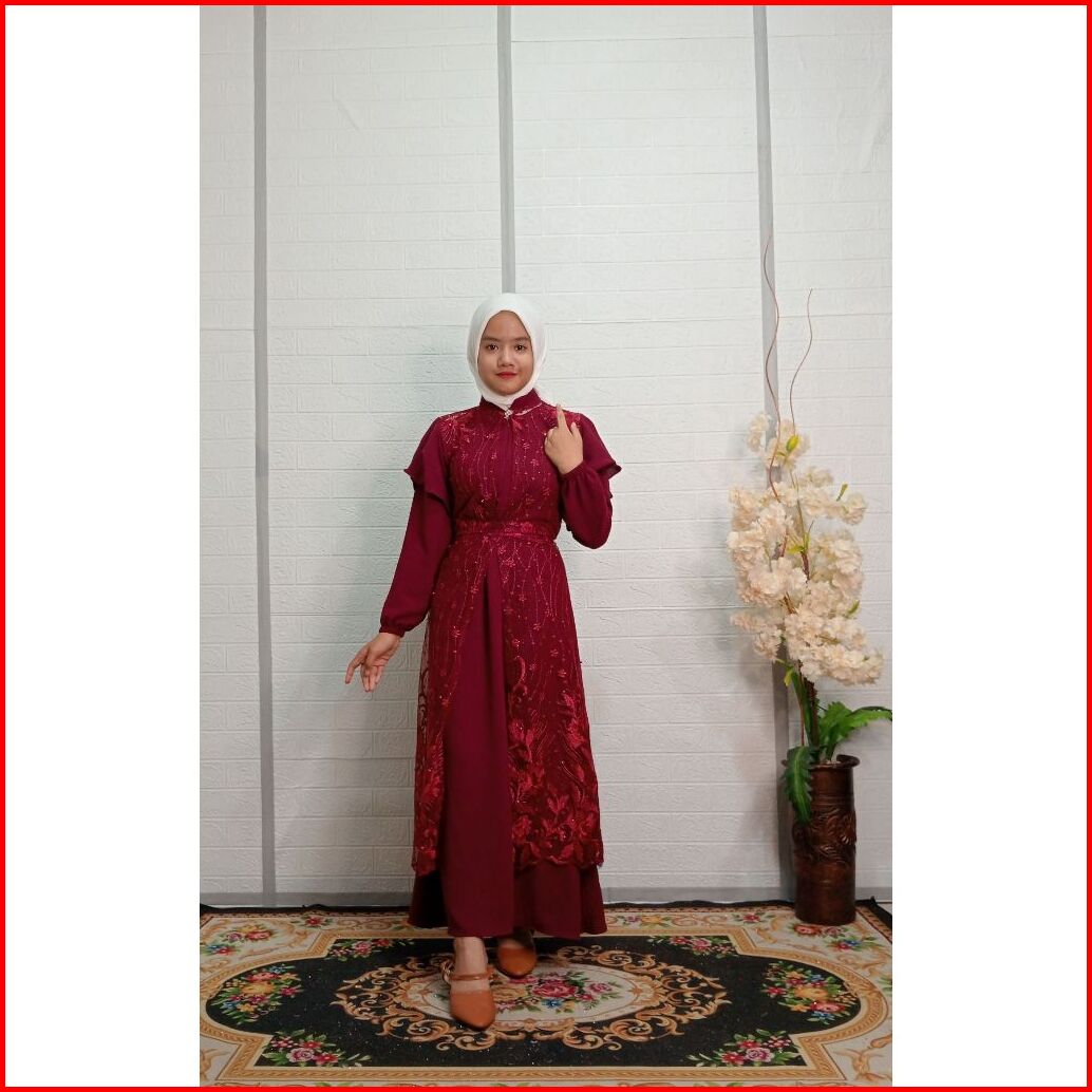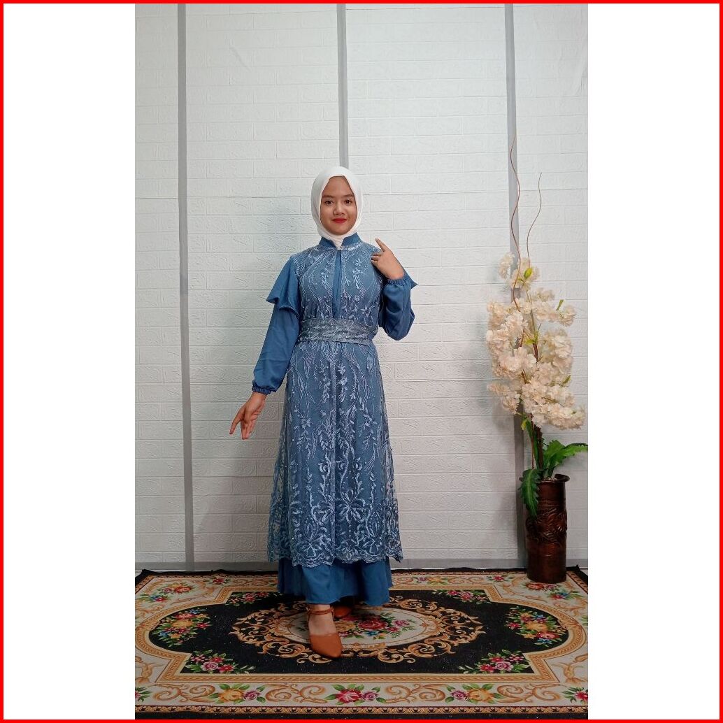 Gamis Anak Crinkle Mix Brokat Dress Muslim Size M L Xl Usia 6 -12 Tahun
