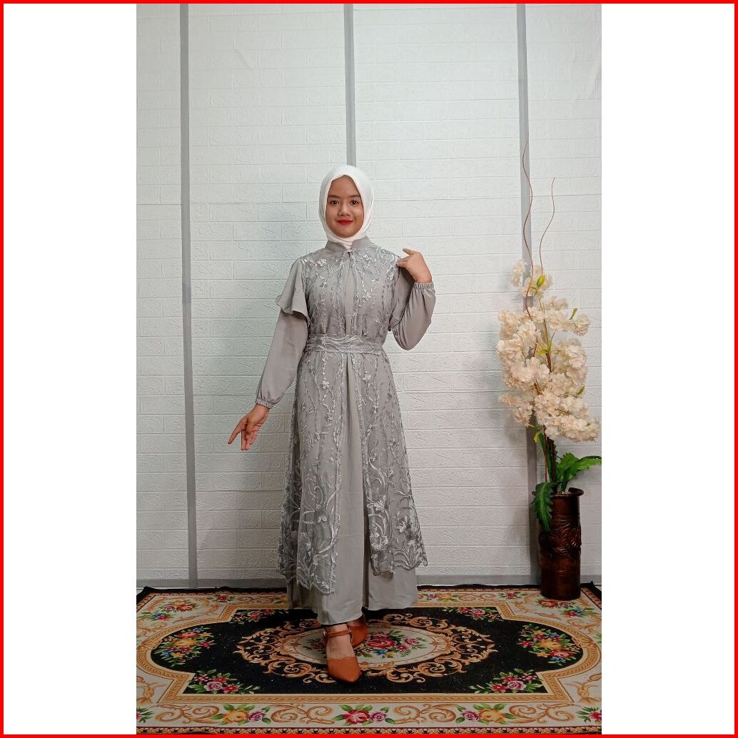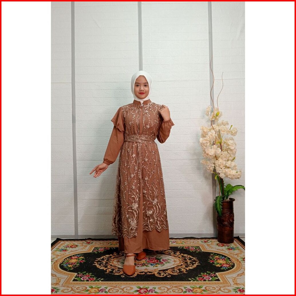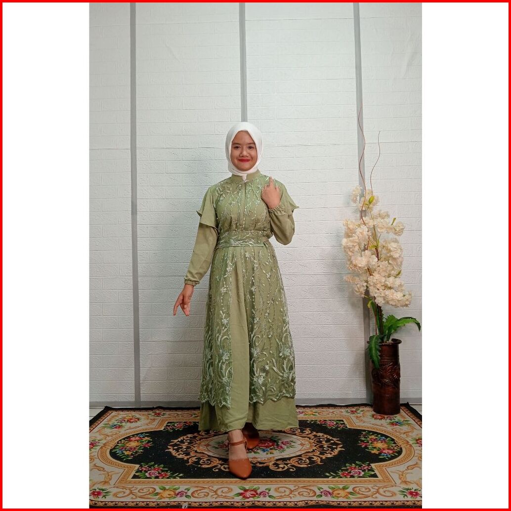 Gamis Anak Crinkle Mix Brokat Dress Muslim Size M L Xl Usia 6 -12 Tahun