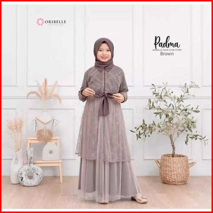 Gamis Anak Perempuan Usia 10-11-12-13-14-15 Tahun Padma Syari Kids Bahan Crinkle Airflow Mix Brukat