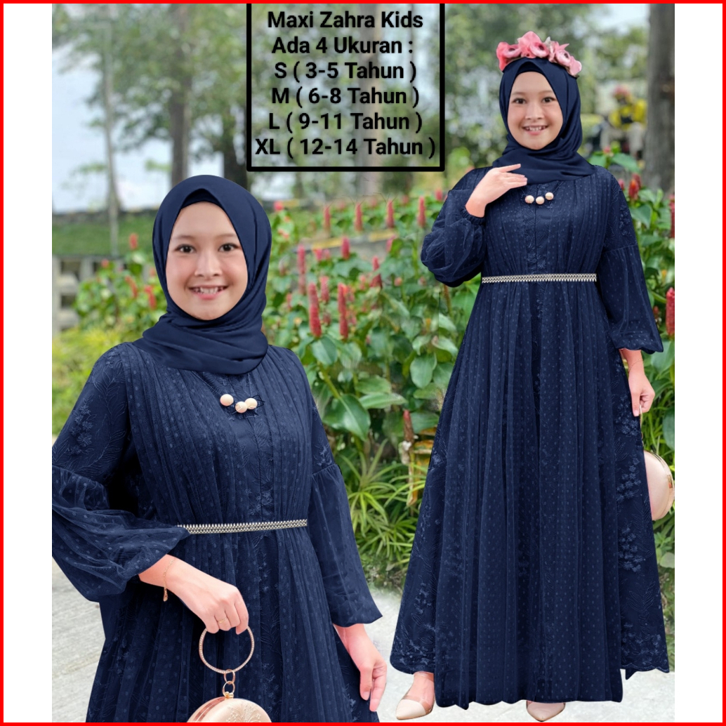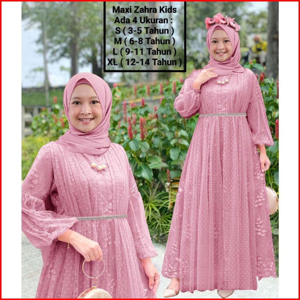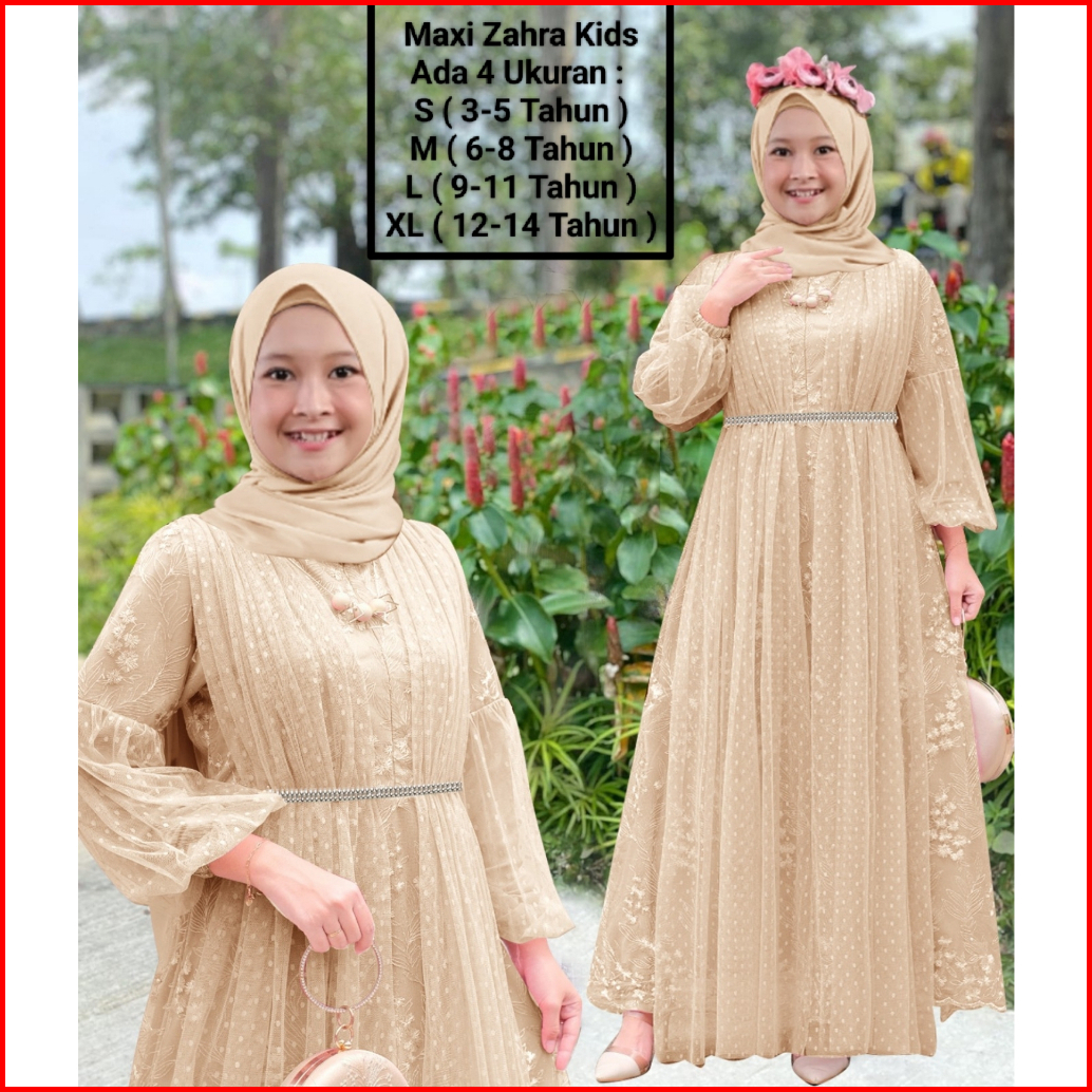 Gamis Anak Perempuan Remaja Abg Terbaru Maxi Zahra Kids 3-14 Tahun Matt Full Brokat Mutiara Di Lapis Furing Hyget Mix Ti